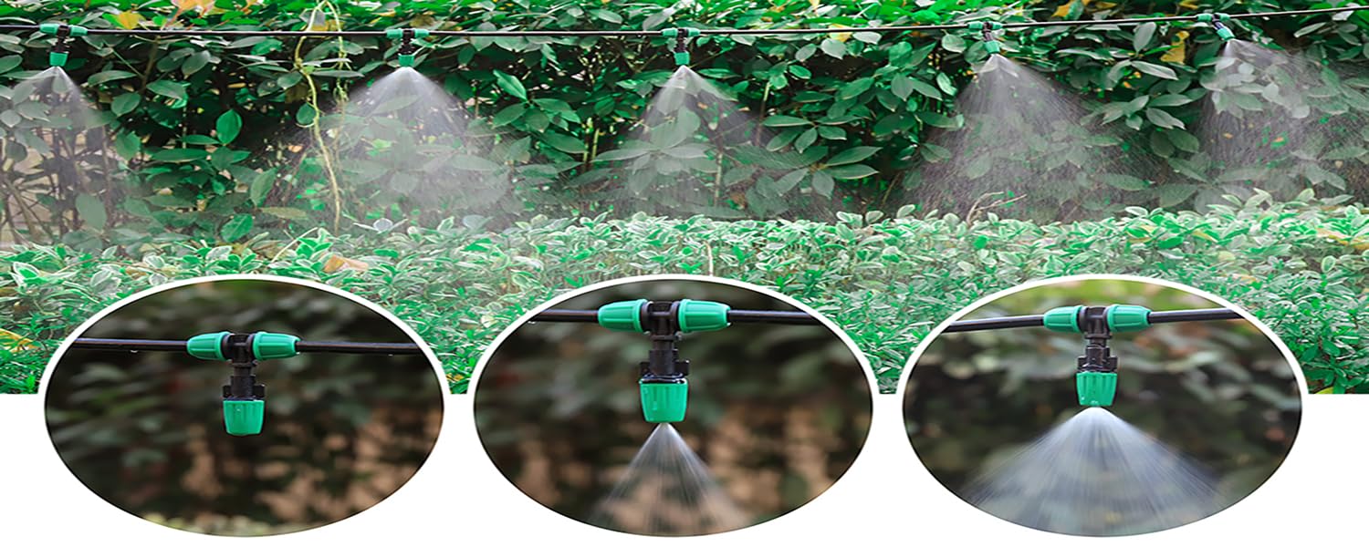- Easy to install&Use: 20 Lock Barbed 6mm to 1/4 Inch Tee, 20 Adjustable Atomizing Nozzles 5 Lock Barbed 1/4 End Plugs.Great for Agriculture and Industry,greenhouse, lawn, garden, patio, balcony cooling,