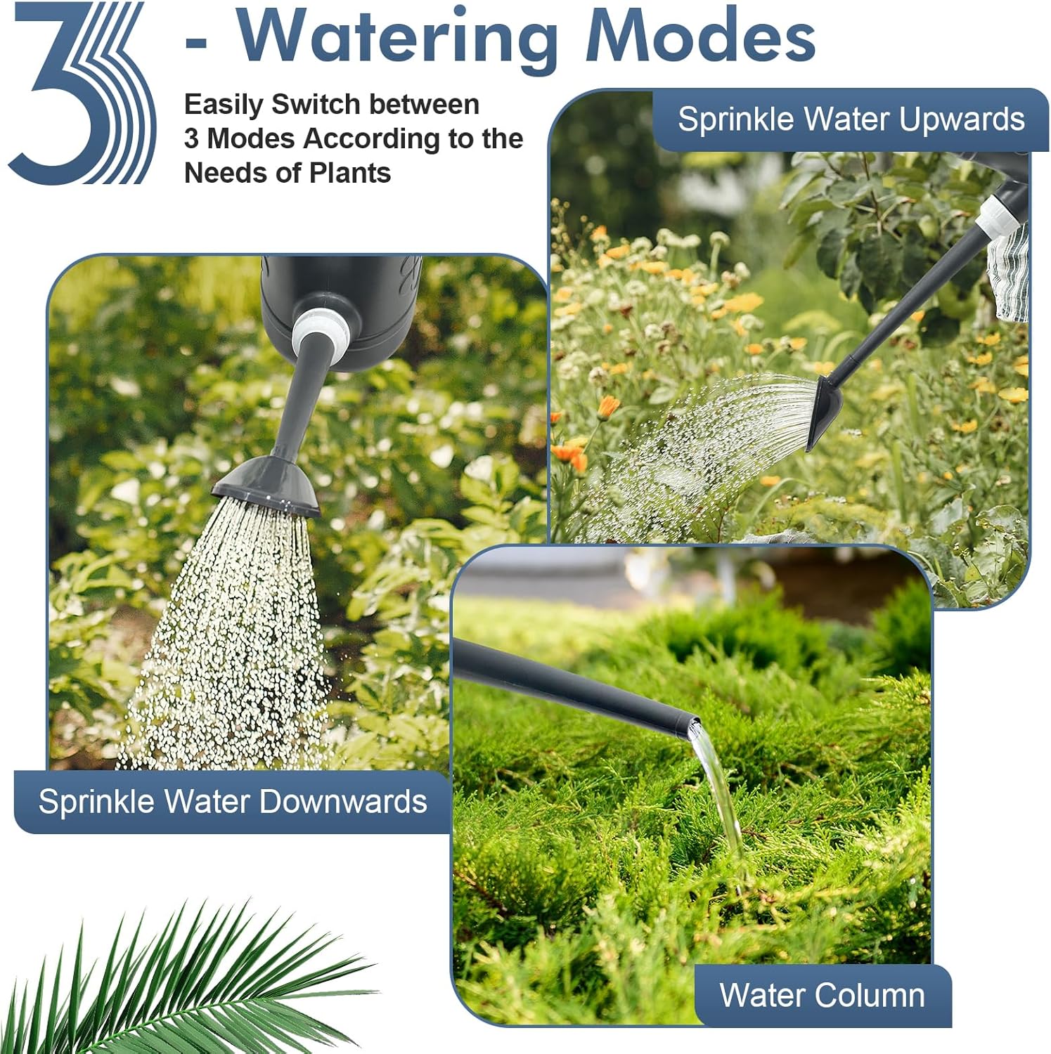 - [DIFFERENT WATERING MODES FOR BETTER PLANT CARE]-The newly upgraded detachable stainless steel shower head allows water to be evenly sprinkled, fine and even water droplets just like a gentle rain to protect more delicate plants, remove the shower head and switch to a water column model to irrigate bigger plants. You can turn or removed the nozzle as needed to choose a stable water column or gentle shower mode, meeting the watering needs of different plants and take good care of them.