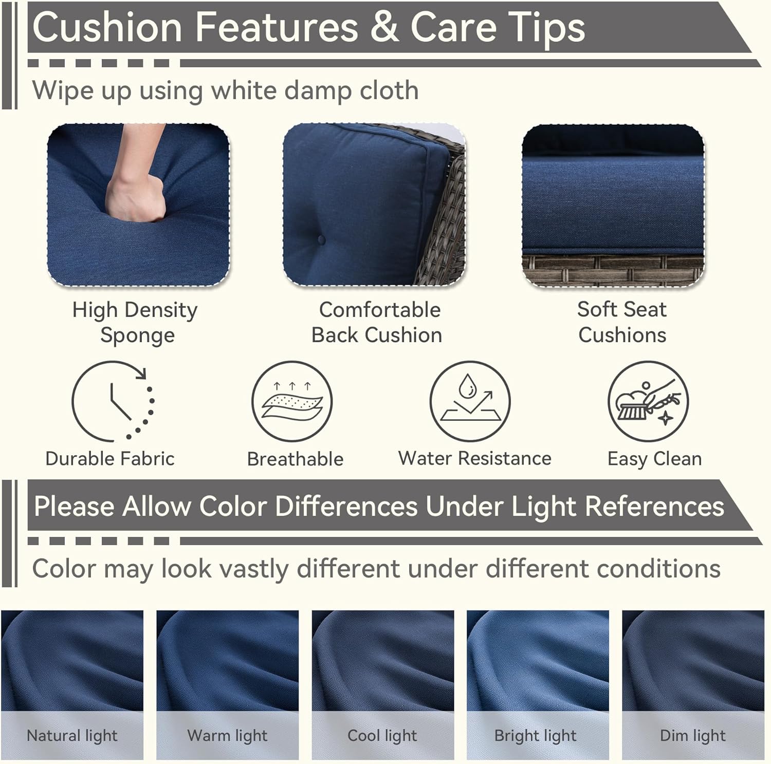 7 Pieces Outdoor Patio Conversation Set, Wicker Furniture Set Includes 3-Seat Sofa, Patio Rattan Dining Chair Set of 4, 2 Ottomans, for Porch, Yard, Mixed Brown Rattan, Blue