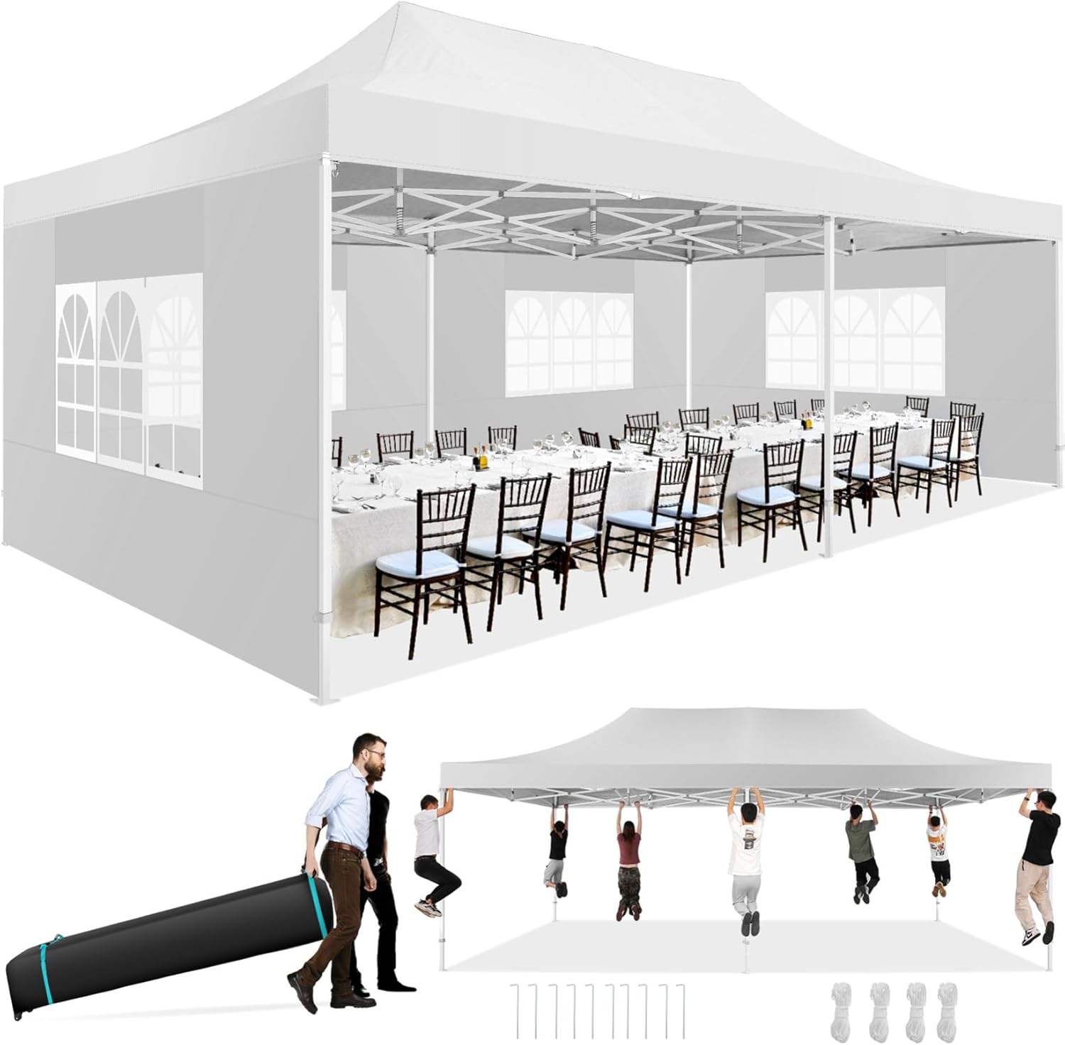 COBIZI 13x26 Pop up Canopy Heavy Duty with 6 Sidewalls, Easy Set-up Commercial Outdoor Party, 100% Waterproof Wedding Canopy Gazebo, 2 Height Adjustable with Wheeled Bag,White