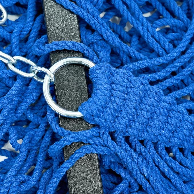 - UPGRADED 30% THICKER SAFER ROPES: It is hand-woven with classic net-like stronger poly-cotton ropes.The 52 inch hardwood spreader bar balances the hammock perfectly and also forms a stylish design with cotton rope that hits you right in the heart.
