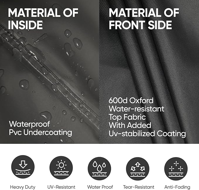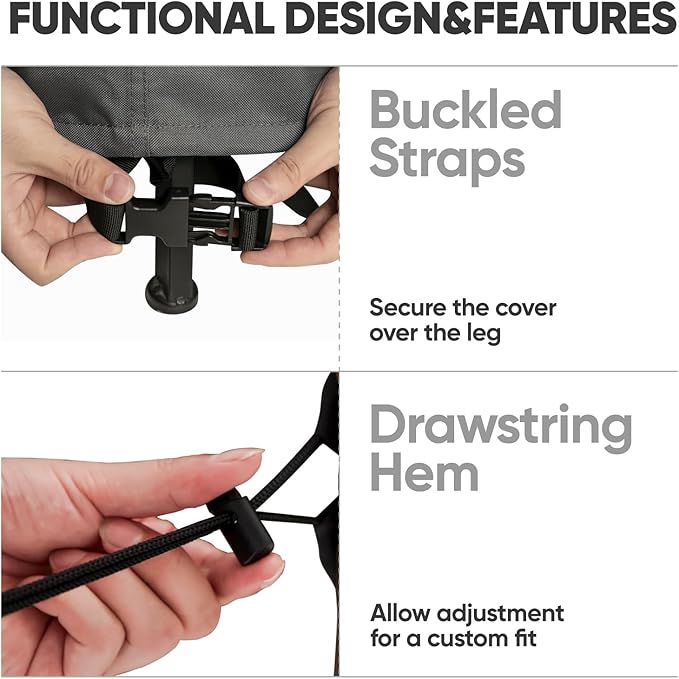 - Sun-Resistant and Long Lasting - With an advanced PVC waterproof coating, our outdoor patio furniture covers can withstand prolonged exposure to the sun without fading. It ensures that your outdoor furniture remains in top condition, safeguarding it from wind, rain, and the harsh effects of sunlight.