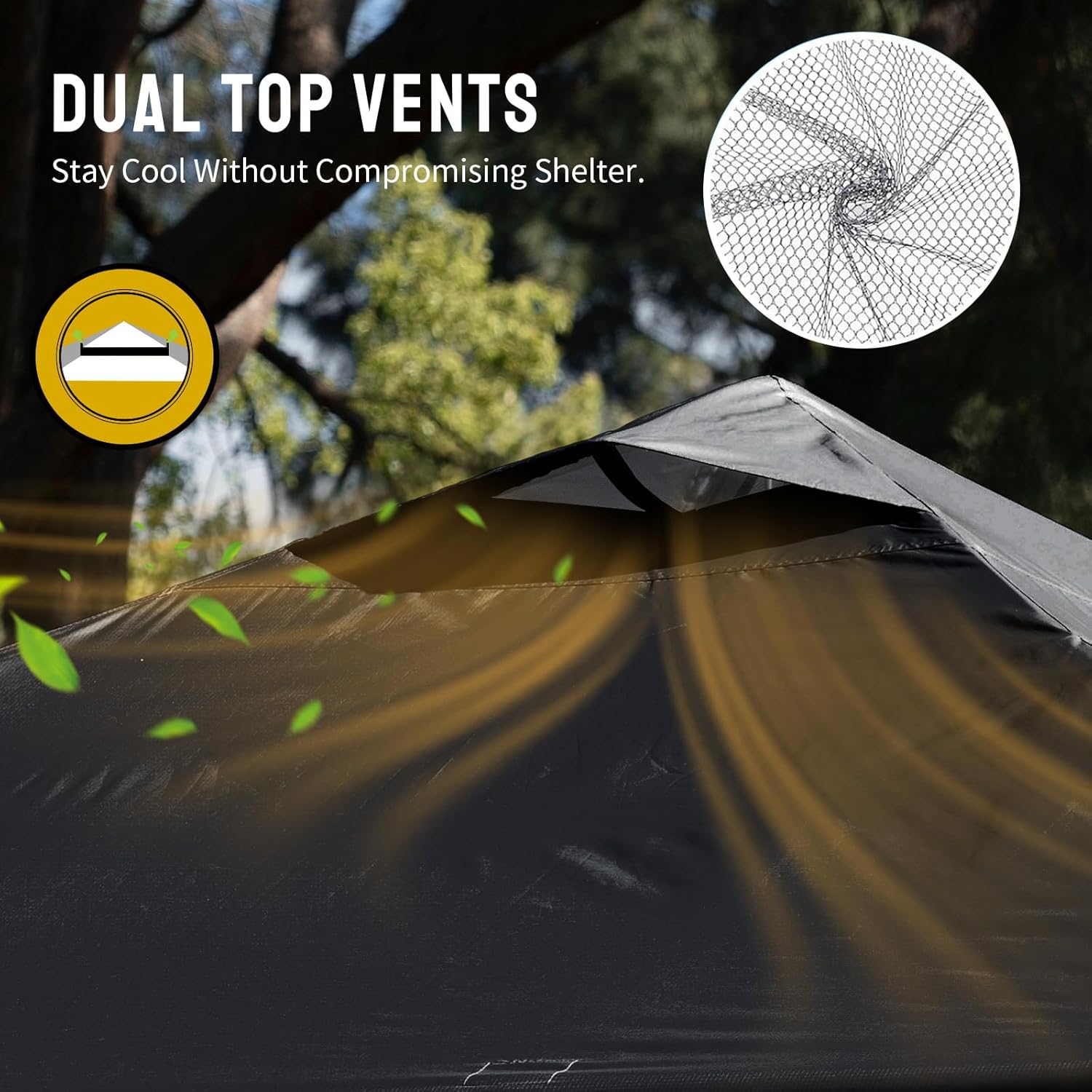 - Spacious Shelter: Measuring an ample 12x12 feet with a 144 square feet canopy footprint, our tent provides a generous area of shade, allowing over 9 feet of interior height and 6.3 feet of clearance under the valance for comfort and movement.