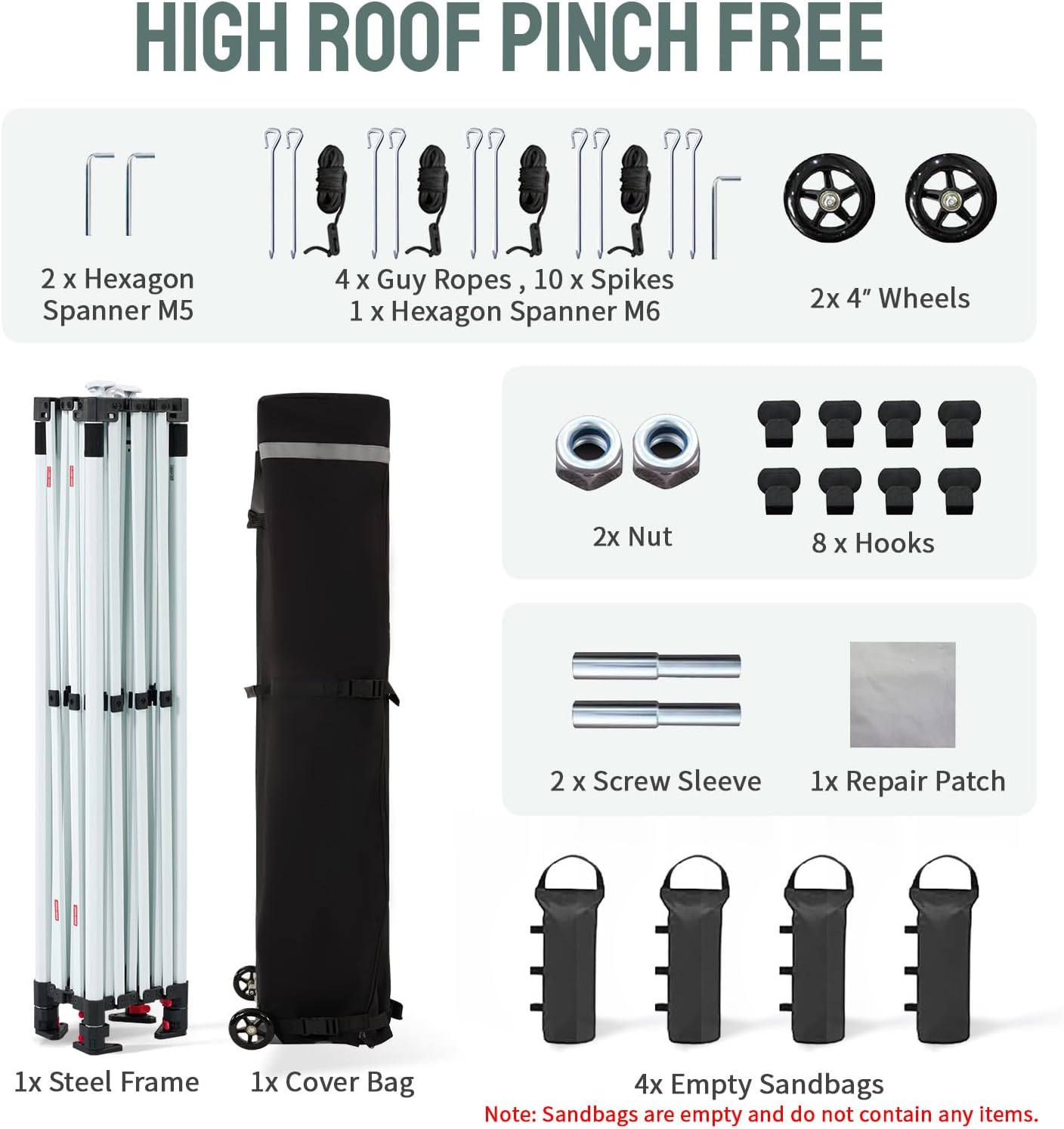 - EFFORTLESS HEIGHT CUSTOMIZATION: With our pinch-free design, easily adjust the height of your pop-up tent canopy to three different levels. This feature allows for quick changes on the outdoor tent canopy, ensuring optimal functionality in any setting
