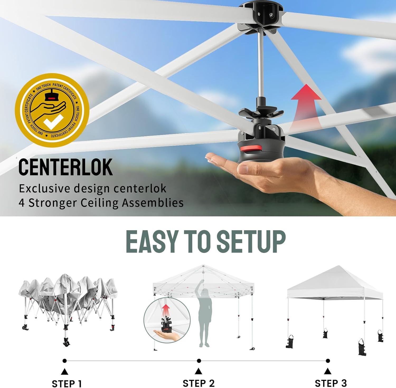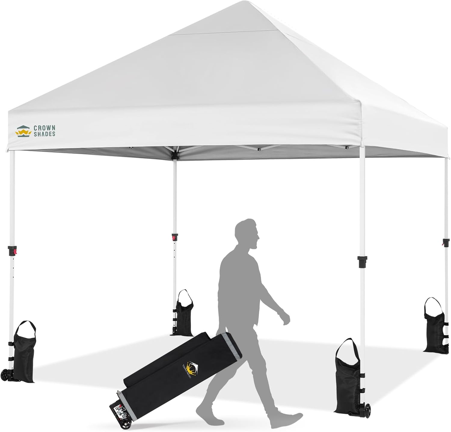 CROWN SHADES 8x8 Pop Up Canopy Tent,Commercial Canopy Tent Heavy Duty with 4" Wheels,4 Upgraded Weights,Patented Centerlock,400D Strength Oxford Fabric, Sto'N Go Bag,for Parties, Events, Camping,White