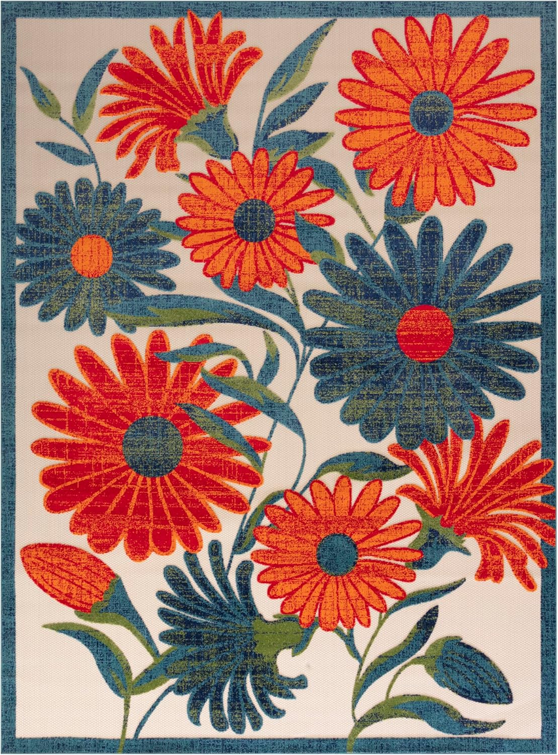 Nourison Home Aloha Indoor/Outdoor Ivory Multicolor 9' x 12' Area Rug, Easy Cleaning, Non-Shedding, Bed Room, Living Room, Dining Room, Backyard, Deck, Patio (9x12)