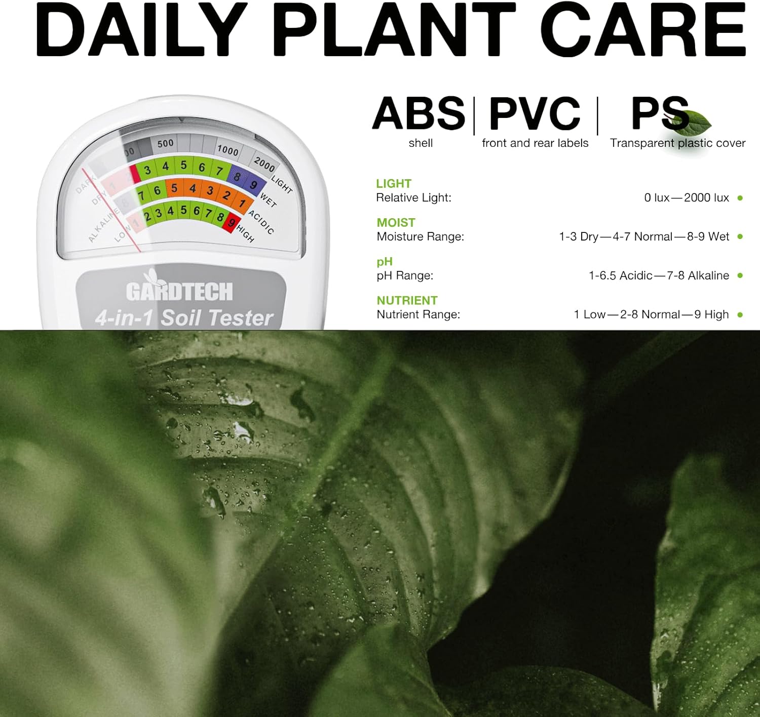 - 🌻【4-in-1 Multi-Function】- This soil meter for plants can meet your needs to measure soil moisture, Ph, nutrients, and light conditions at the same time. The 4-in-1 soil moisture meter indoor plants is much more cost-effective than traditional single-function soil testers, and you only need to buy one to enjoy all four services. It helps you to fully understand your plants.