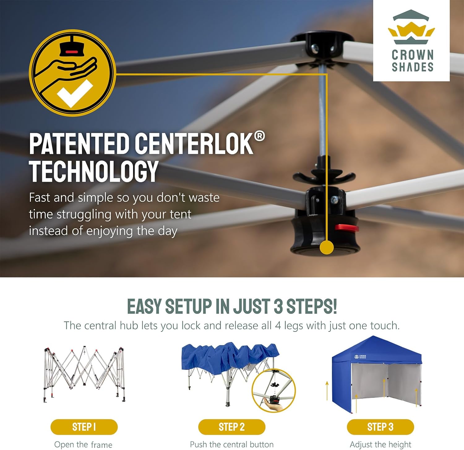 CROWN SHADES 10X10 Comercial Instant Canopy Pop Up Tent with Center Lock (10x10 with 4 Sidewalls, Navy Blue)
