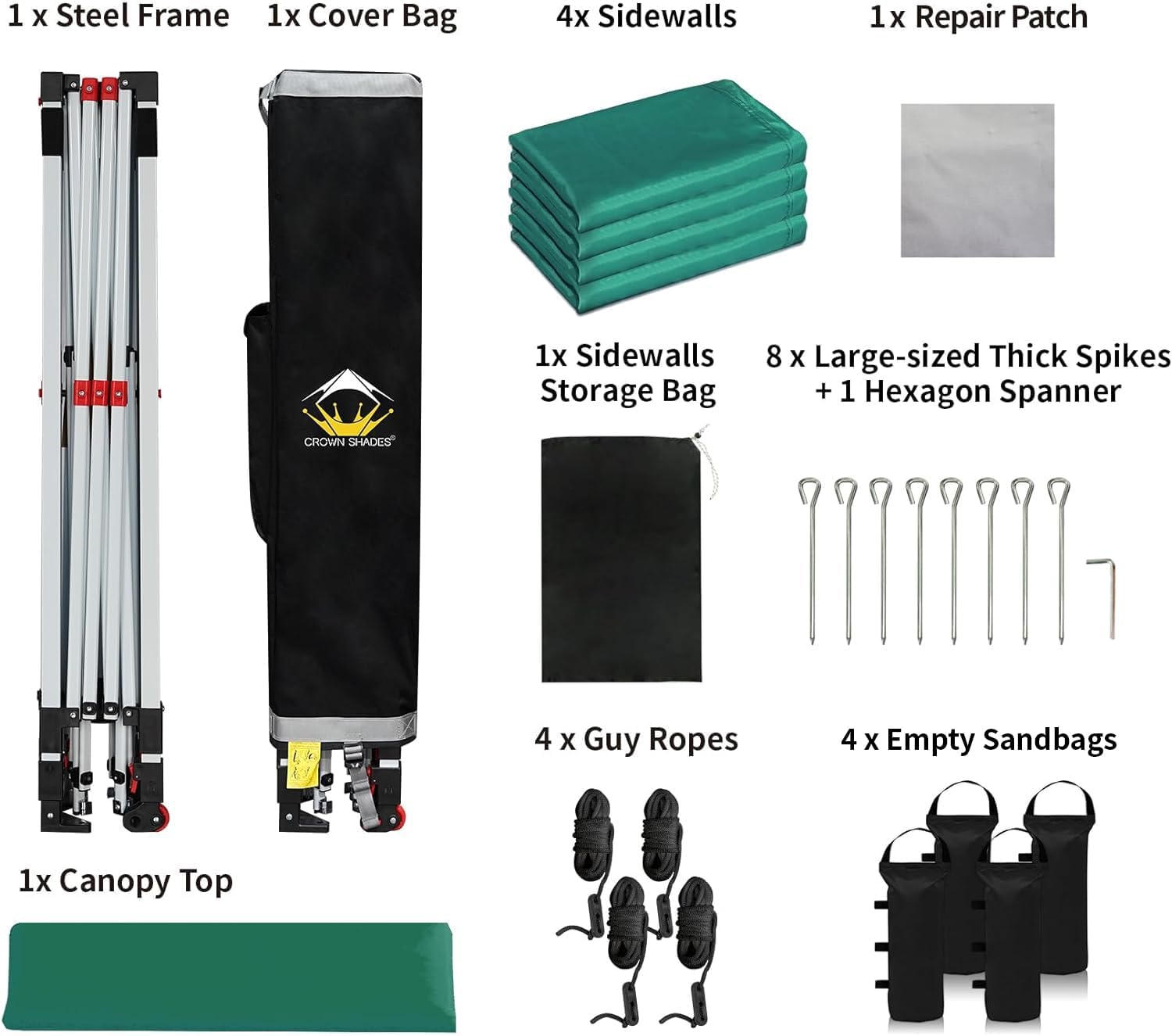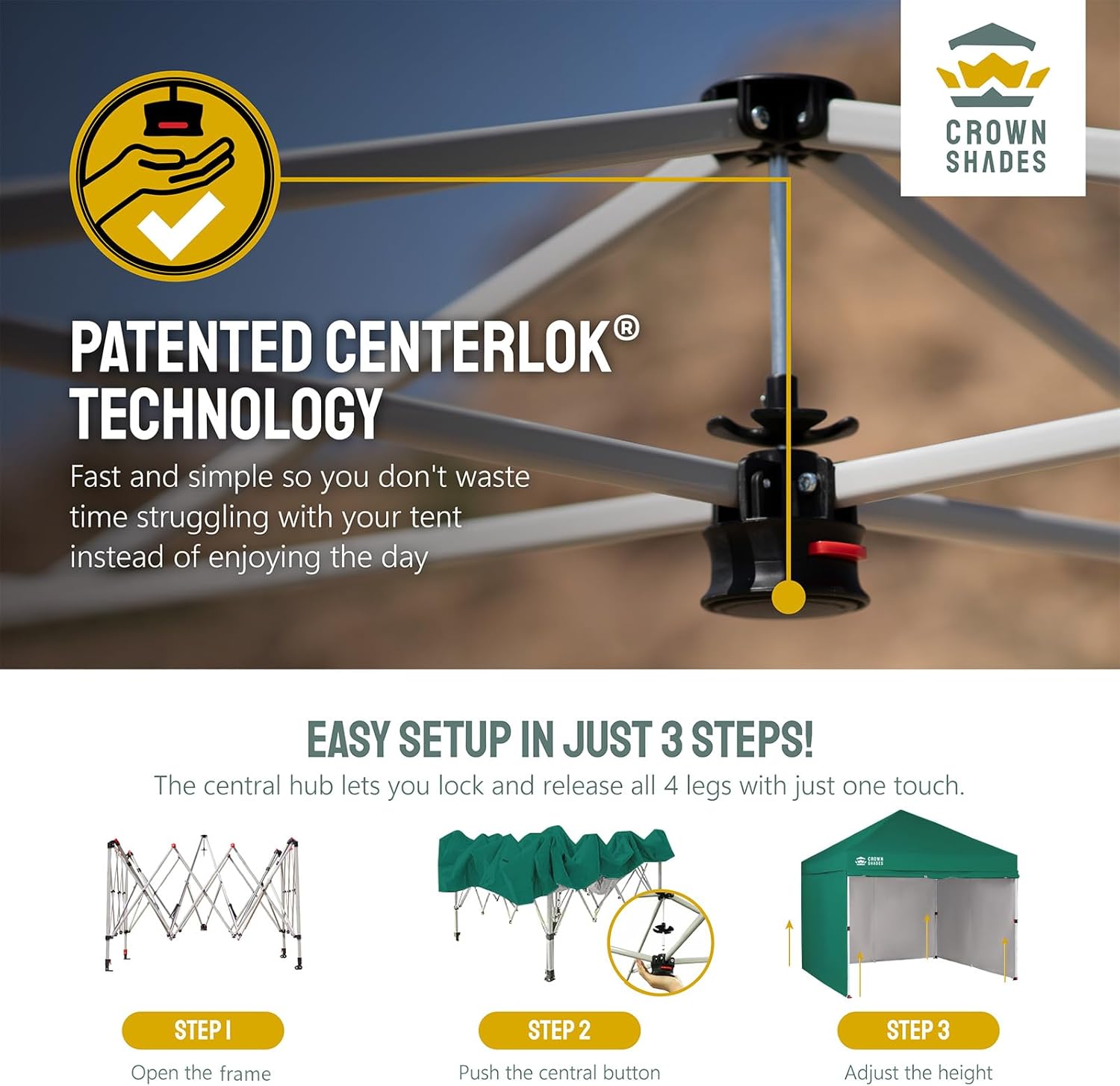 CROWN SHADES 10X10 Comercial Instant Canopy Pop Up Tent with Center Lock (10x10 with 4 Sidewalls, Forest Green)