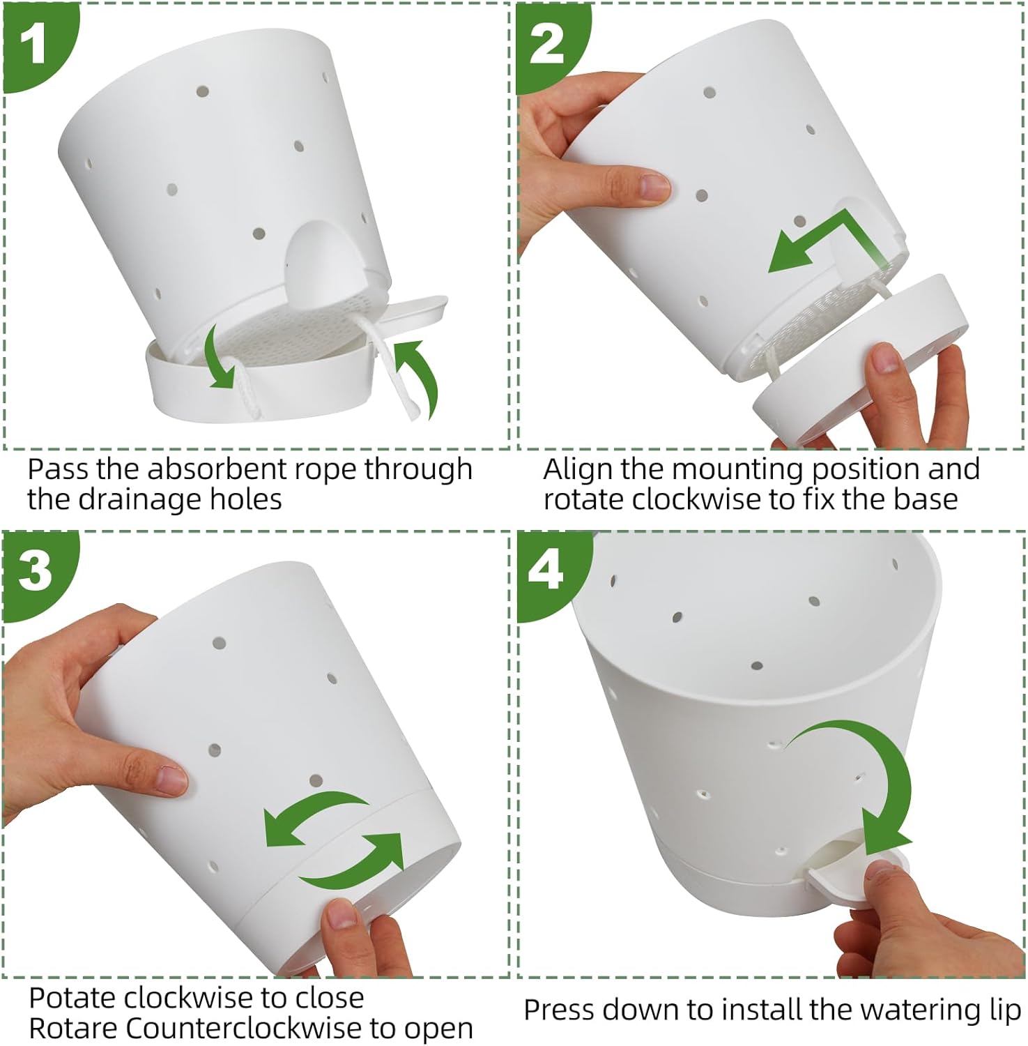 - Easy to Install: Plastic plant pot for orchid comes with a detachable tray that can be installed clockwise and removed counterclockwise. Each self watering pots is equipped with a watering lip to allow watering through the lip, and providing a clear view of the water level.