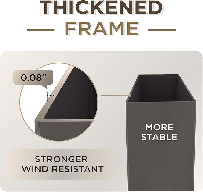 - High Quality and Durable: The canopy of the patio umbrellas made of high quality 250/gsm yarn-dyed polyester fabric with PU coating which are UV resistant, water-repellent and fadeless. And anti-oxidation spray painted on the fram will maintain a long period life