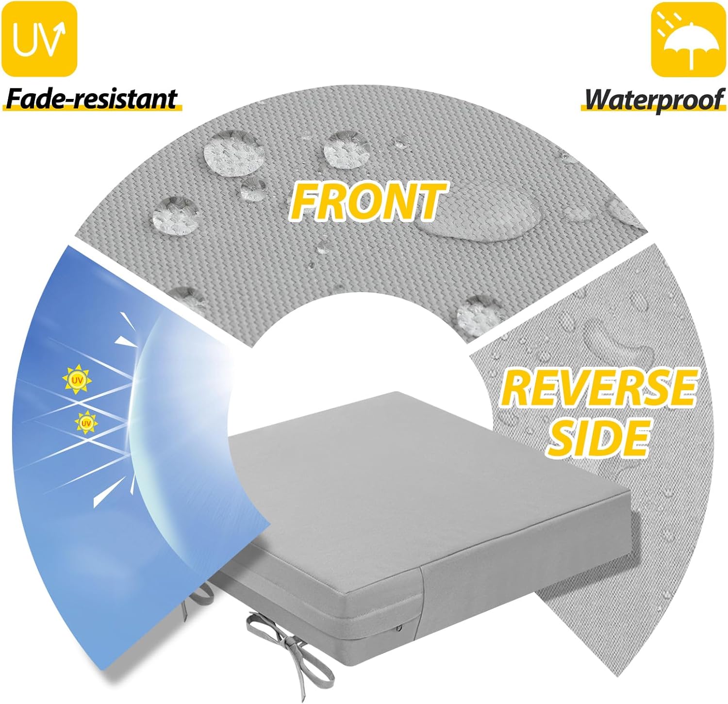 - Waterproof & Removable Cover: Durable, breathable polyester with a waterproof coating, UV protection, and fade resistance for lasting outdoor use. The zippered cover allows easy cleaning and replacement, with hidden zippers for a seamless look