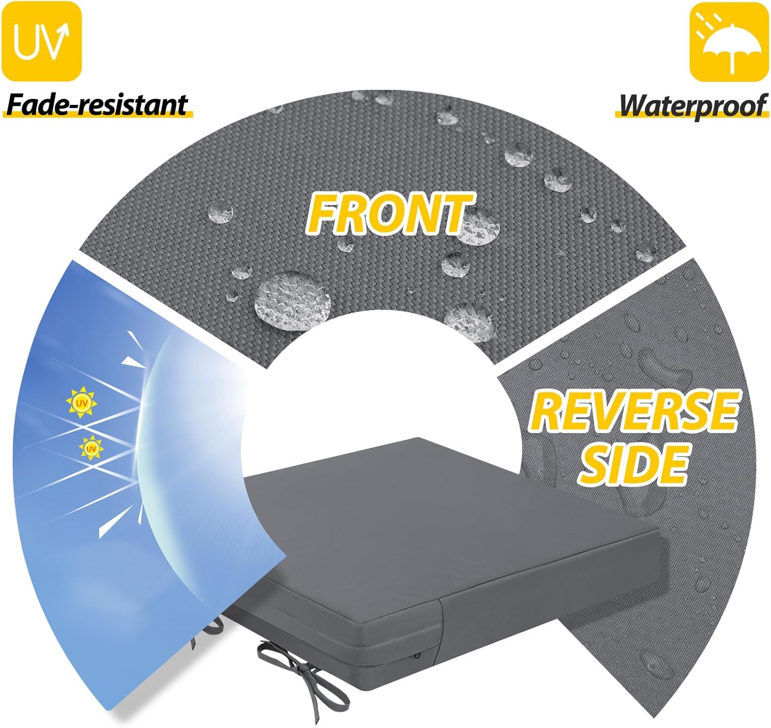 - Waterproof & Removable Cover: Durable, breathable polyester with a waterproof coating, UV protection, and fade resistance for lasting outdoor use. The zippered cover allows easy cleaning and replacement, with hidden zippers for a seamless look