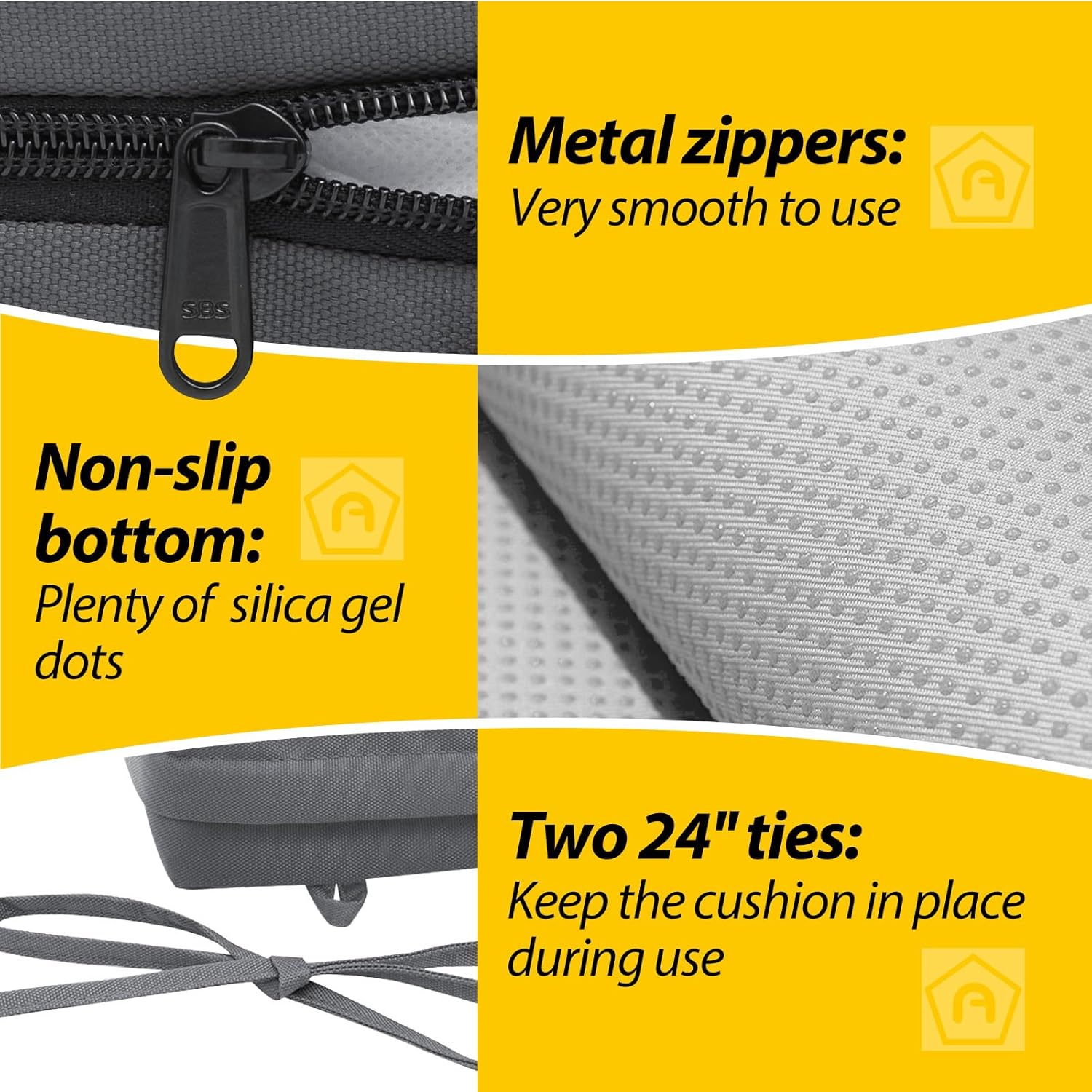 - Non-slip Ties and Piped Edge: The two non-slip ties can be fastened to your furniture to keep the outdoor cushion in place