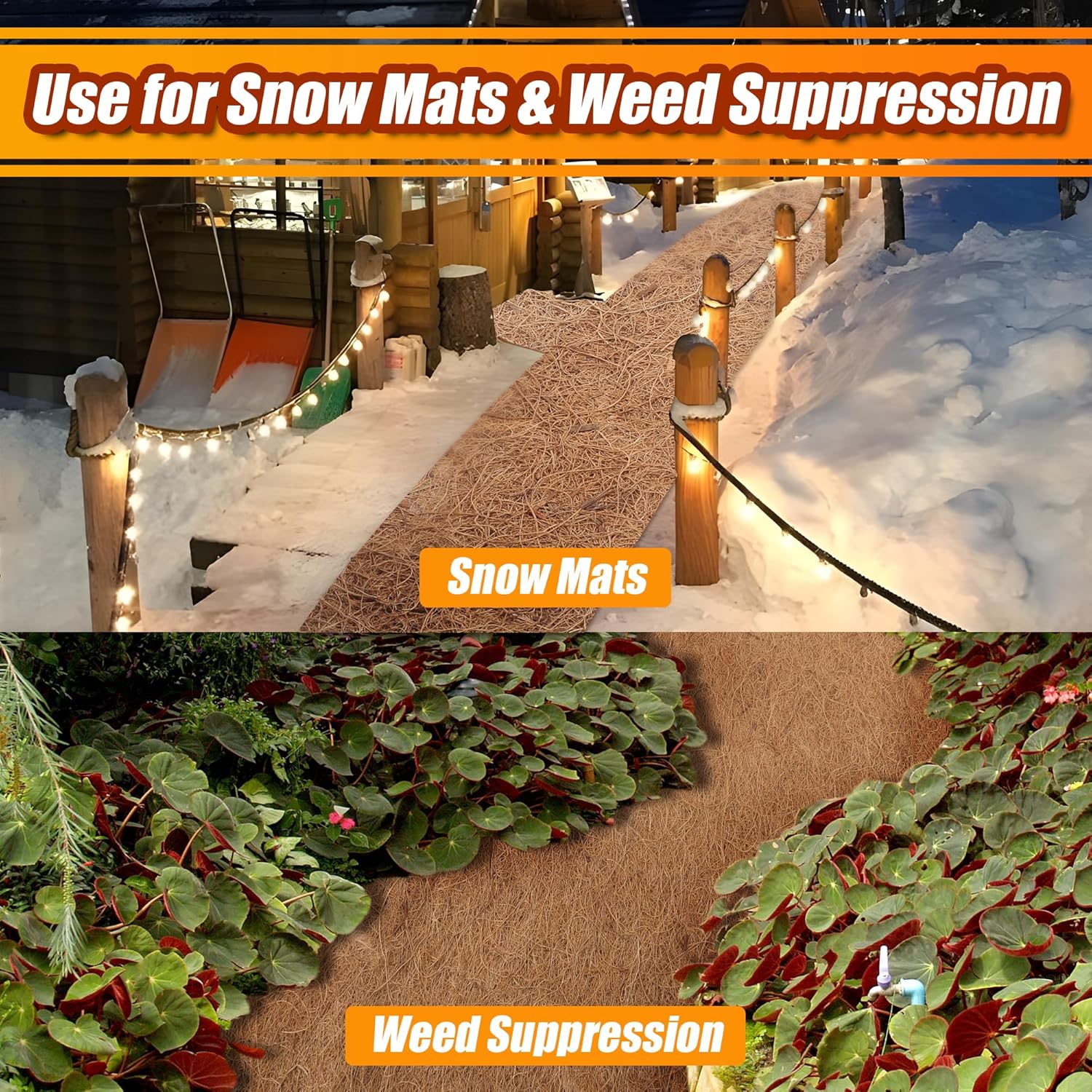 - Perfect for Snow Mats - The coco fiber roll is designed to be anti-slip, making it an effective snow melting mat, door mat, or step mat to prevent slipping on snowy surfaces. Additionally, it functions as a weed mat for garden edges, preventing weed growth and maintaining a tidy garden.