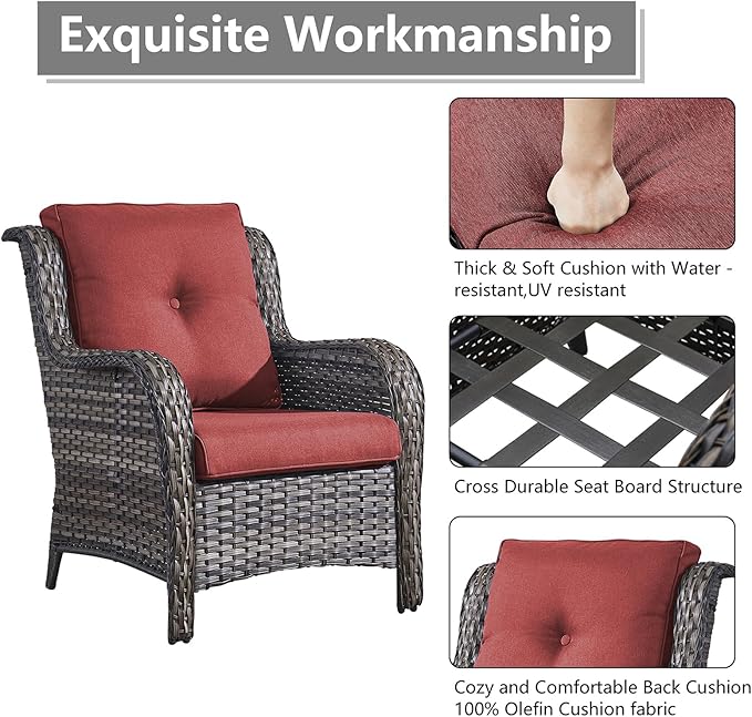 - 【Deep Seating & Comfort Cushions】The patio furniture set with 4-inch Seat Cushion,5-inch Back Cushion,3.5-inch Ottoman cushion,create the ultimate patio seating and foot relaxation experience.