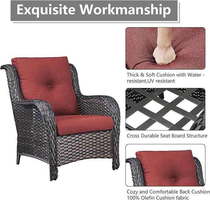 - 【Deep Seating & Comfort Cushions】The patio furniture set with 4-inch Seat Cushion,5-inch Back Cushion,3.5-inch Ottoman cushion,create the ultimate patio seating and foot relaxation experience.