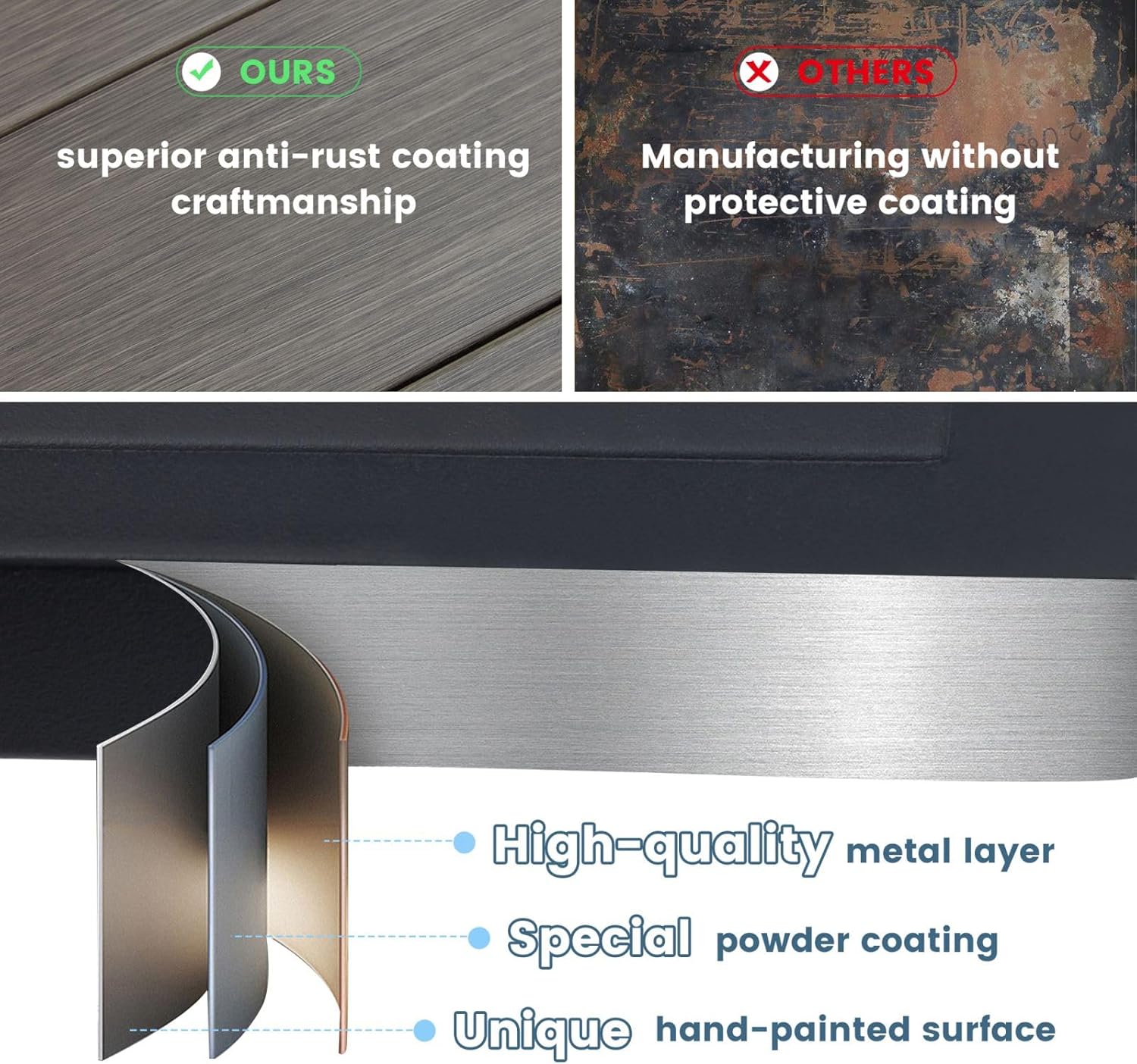 - 【Sturdy Structure】Made of sturdy metal with a weather-resistant, anti-aging, rust-resistant surface, the table is long-lasting and easy to maintain