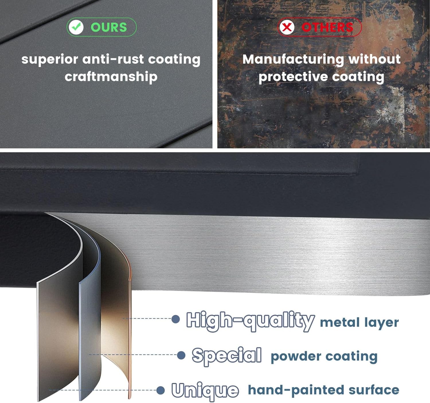 - 【Durable Construction】The table is made of sturdy metal with a weather-resistant, anti-aging, rust-resistant surface that is durable and easy to maintain