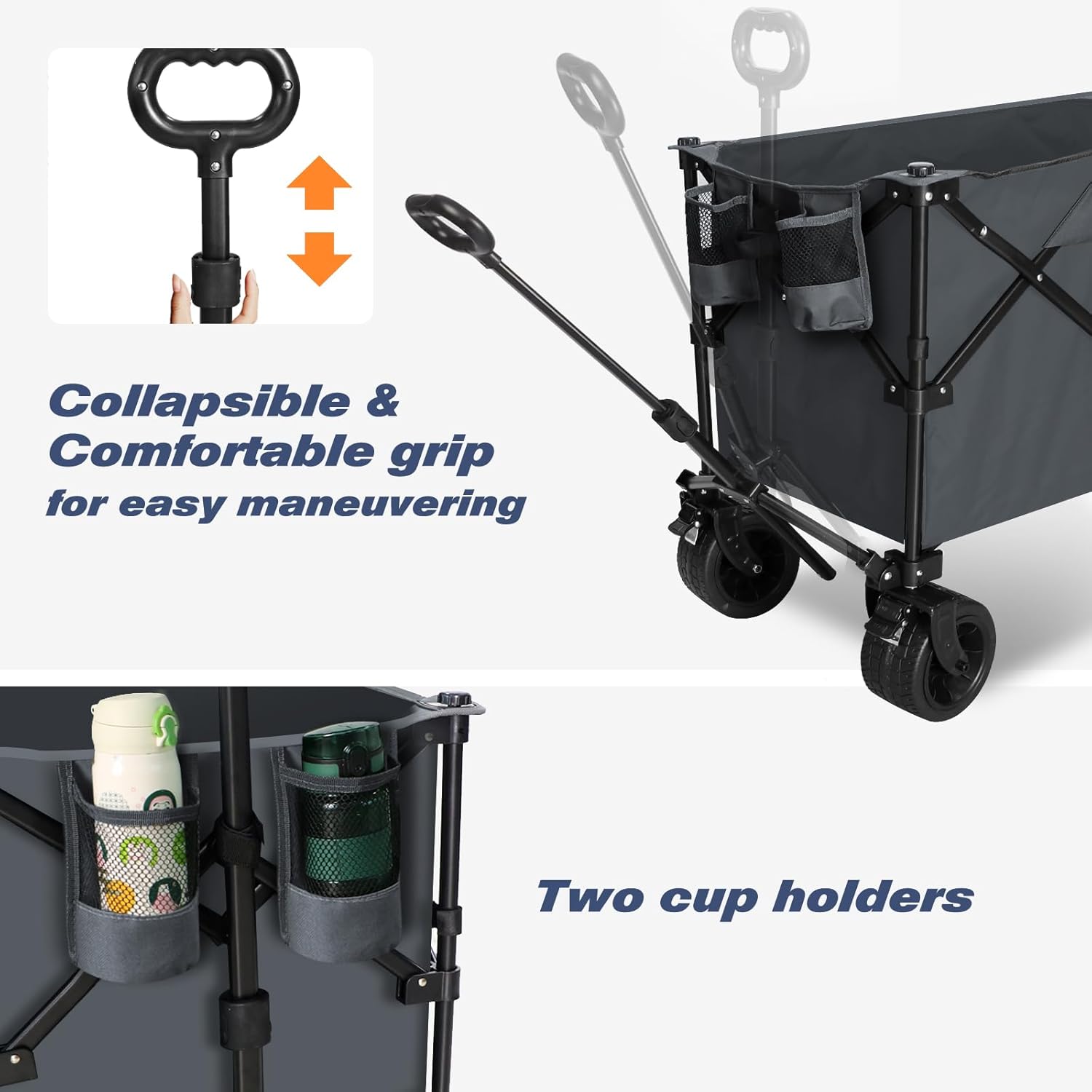 Chihee Garden Cart Collapsible Outdoor Utility Wagon Cart,Folding Beach Cart Oversized Capacity 254L,Heavy Duty Portable Wagon All Terrain Wheels Oversized Side Pocket 2 Drink Holders for Camping