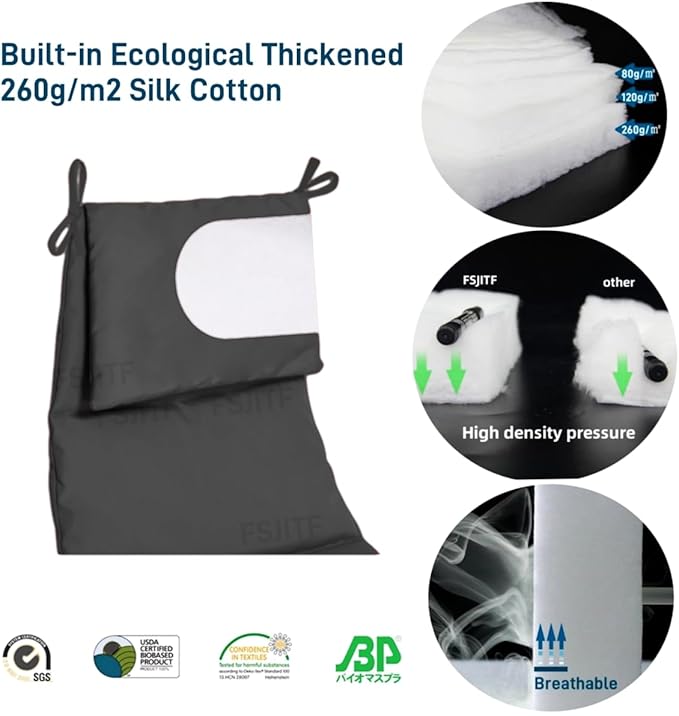 - Outdoor Fabric - Crafted from professional outdoor fabric with 1600-hour ultraviolet resistance, this product delivers years of hassle-free use. Compared to the original cushion, it features thicker padding and offers 3-5 times greater colorfastness than most market alternatives. Its strap design allows for easy attachment to C-shaped chair frames.