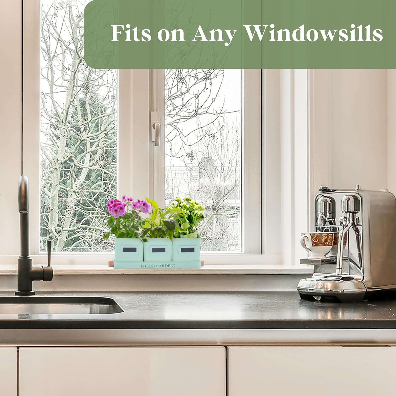 PERFNIQUE Indoor Herb Garden, Herb Planter Set with Tray, Farmhouse Indoor Plant Pots, Windowsill Herb Garden with Drainage(Planter only) for Indoor/Outdoor, Window Pots (Mint)