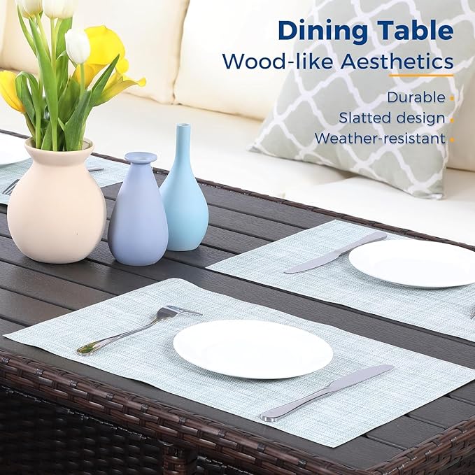 - 【Free Combination & Modern Design】-This outdoor sectional dining set can be easily changed to different layouts and is separable, providing enough space for gatherings of family or friends. The wicker patio furniture set blends functionality with a polished, classic design that is easy to fit any decor.