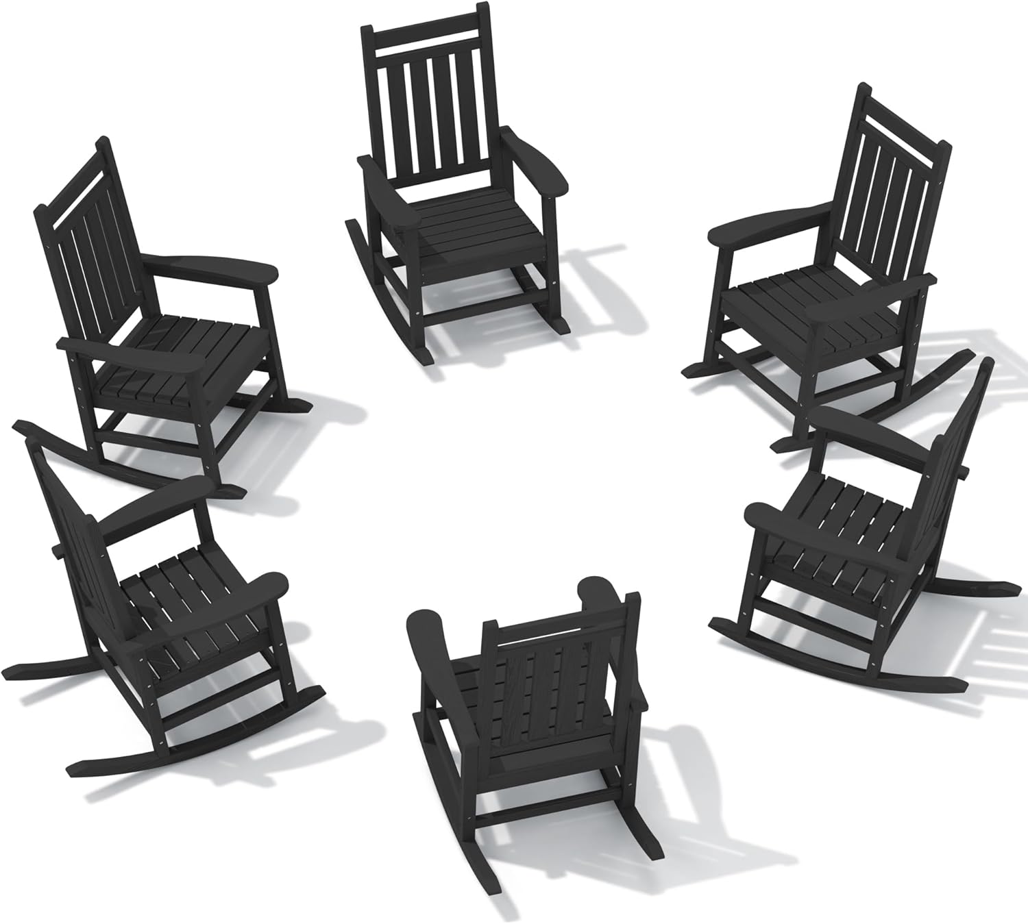 SERWALL HDPE Outdoor Rocking Chair Set of 6, Patio Rocking Chairs for Adults, All Weather Outdoor Rockers for Lawn, Black