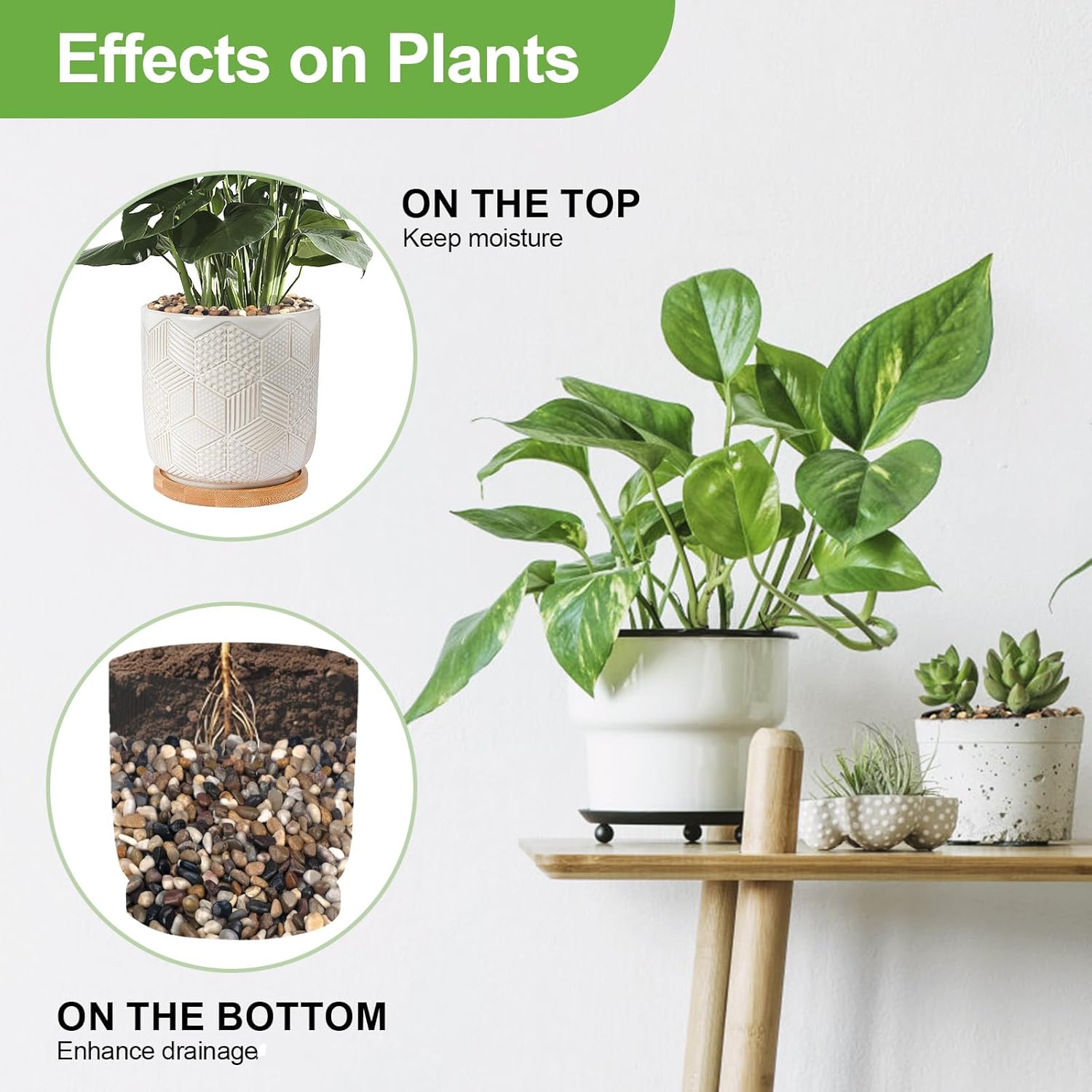 2.5 lbs Pebbles for Indoor Plants, Succulent, Bamboo, Vase, 3/8" Plant Rocks for Pots Indoor, Small River Rocks Decorative Pea Gravel, Highly Polished