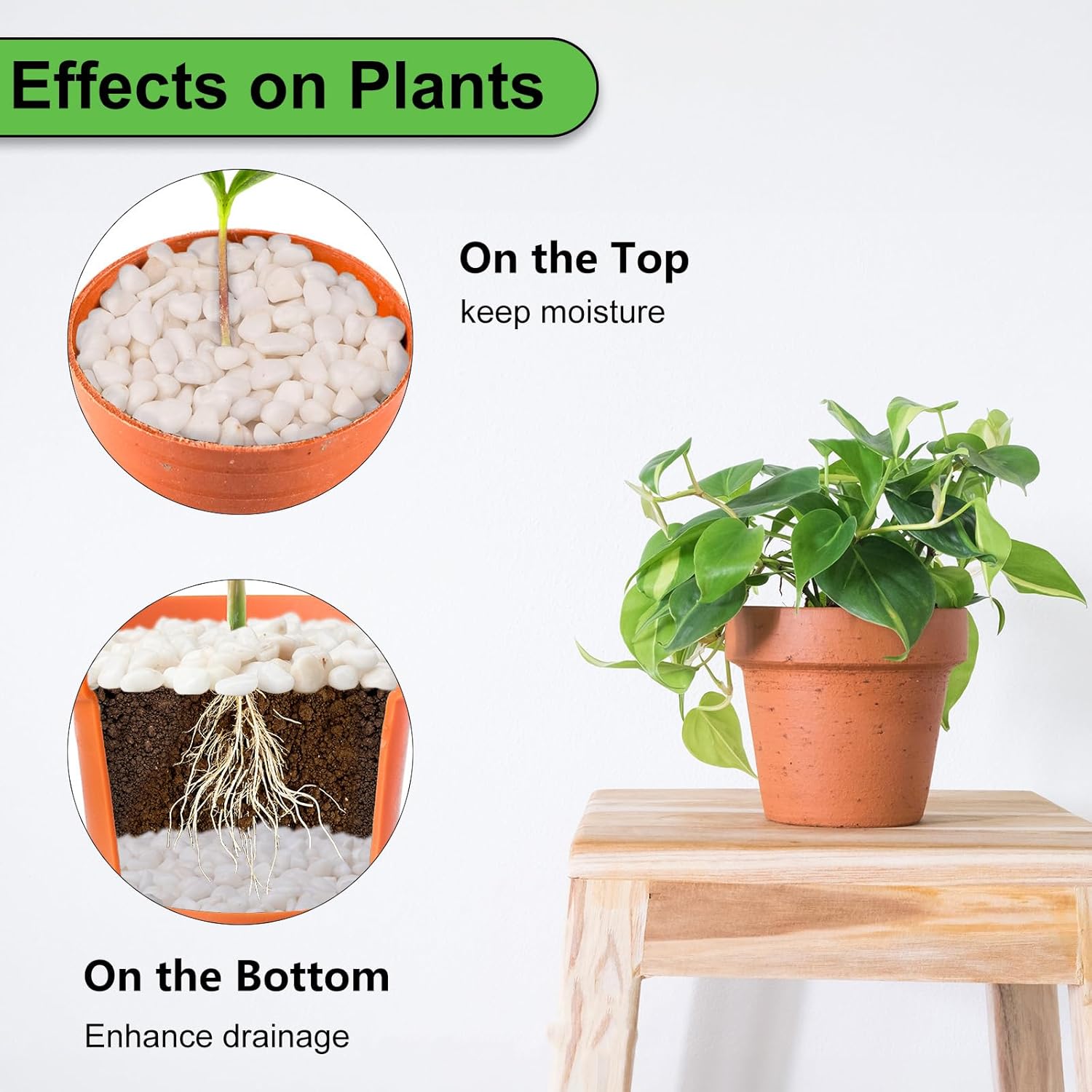 10 lbs White Garden Pebbles for Plants, 3/8" Small Plant Rocks for Pots Indoor, Decorative Pea Gravel for Succulents, Bamboo, Terrarium, Landscaping, Garden