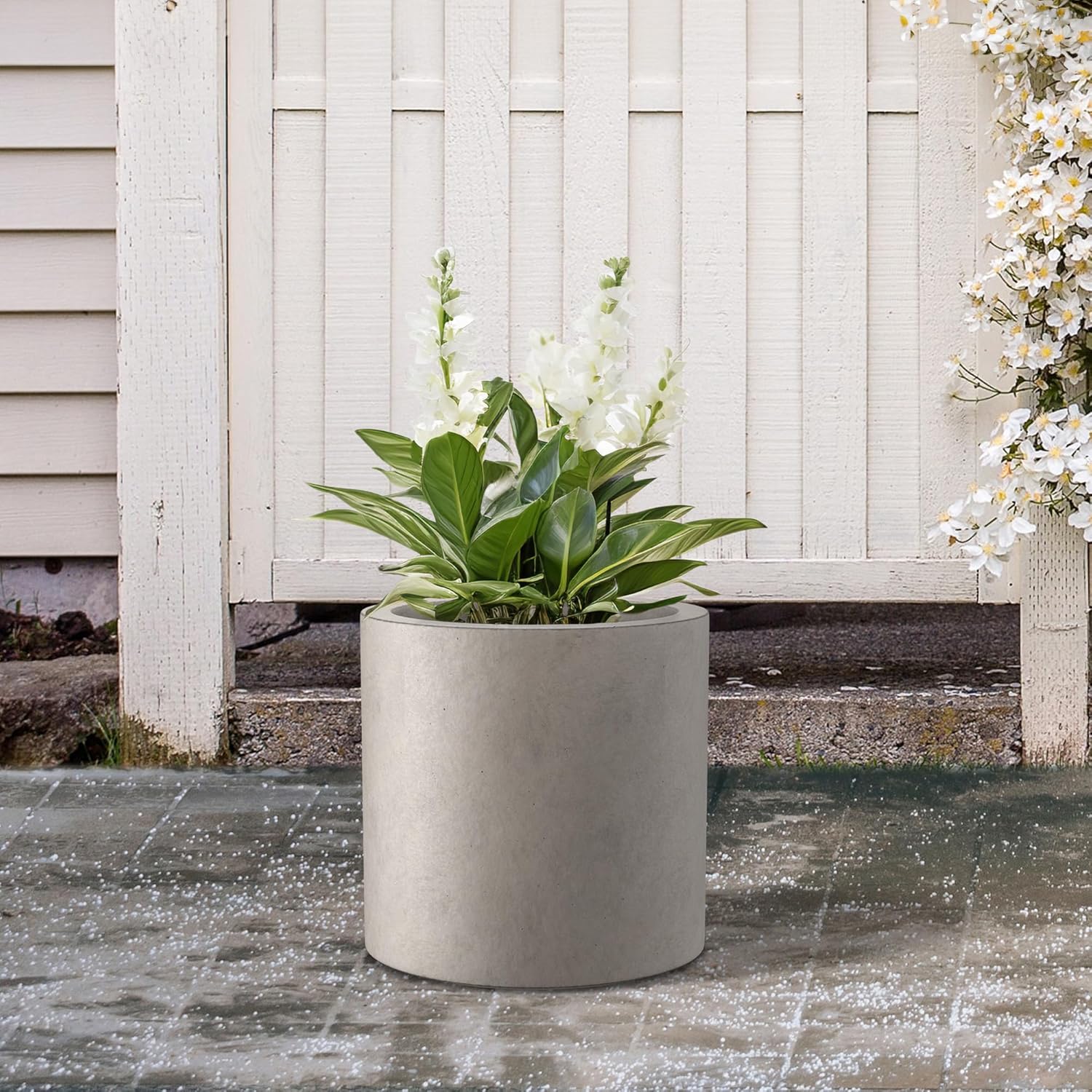 Kante 9.8" Dia Round Concrete Planter, Modern Style Large Cylindrical Plant Pot with Drainage Hole and Rubber Plug for Indoor Outdoor Patio, Weathered Concrete