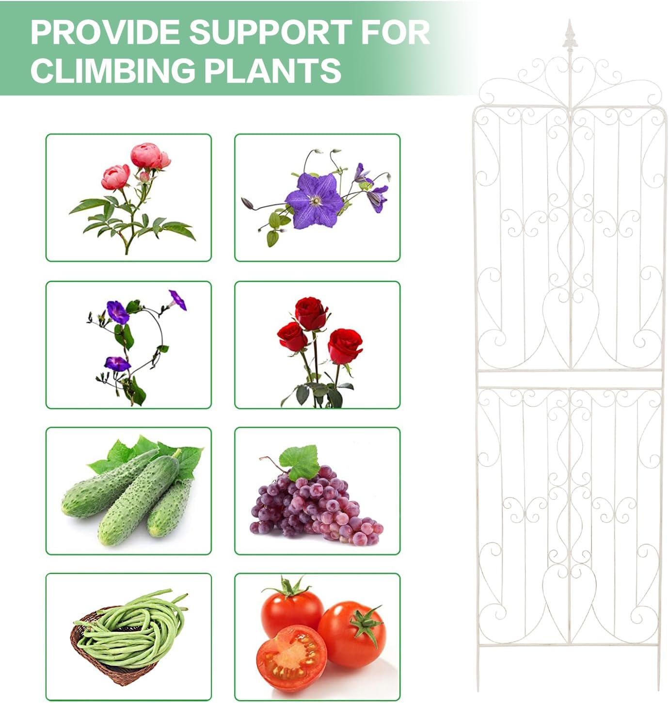 - This metal garden panels designed to support rose flowers, vines, sweet clematis, morning glories, and more. Insert it into the ground,provide more growing space for your climbing plants or vegetables.