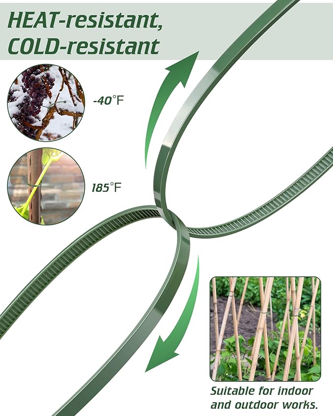 - 【Versatile Gardening Zip Ties】Pack of 100pcs 12 inches heavy-duty green cable ties. The dark green color blends seamlessly with natural greenery-gardening, Christmas trees, hunting blinds, plants, grid wall, etc.