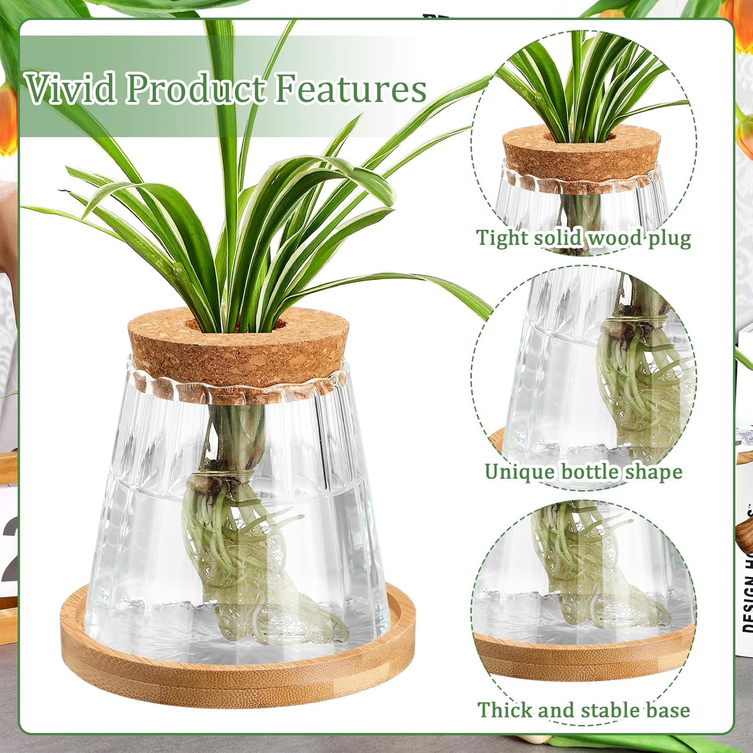 - Quality Material: the propagated plant vase is crafted from quality glass with wooden lids and stands; With its primary color as clear, the terrarium exhibits a minimalist yet elegant look, and the quality material combination ensures the terrarium's durability while enhancing your space aesthetics; In addition to this, it is also convenient for you to observe the growth of the plant's root system
