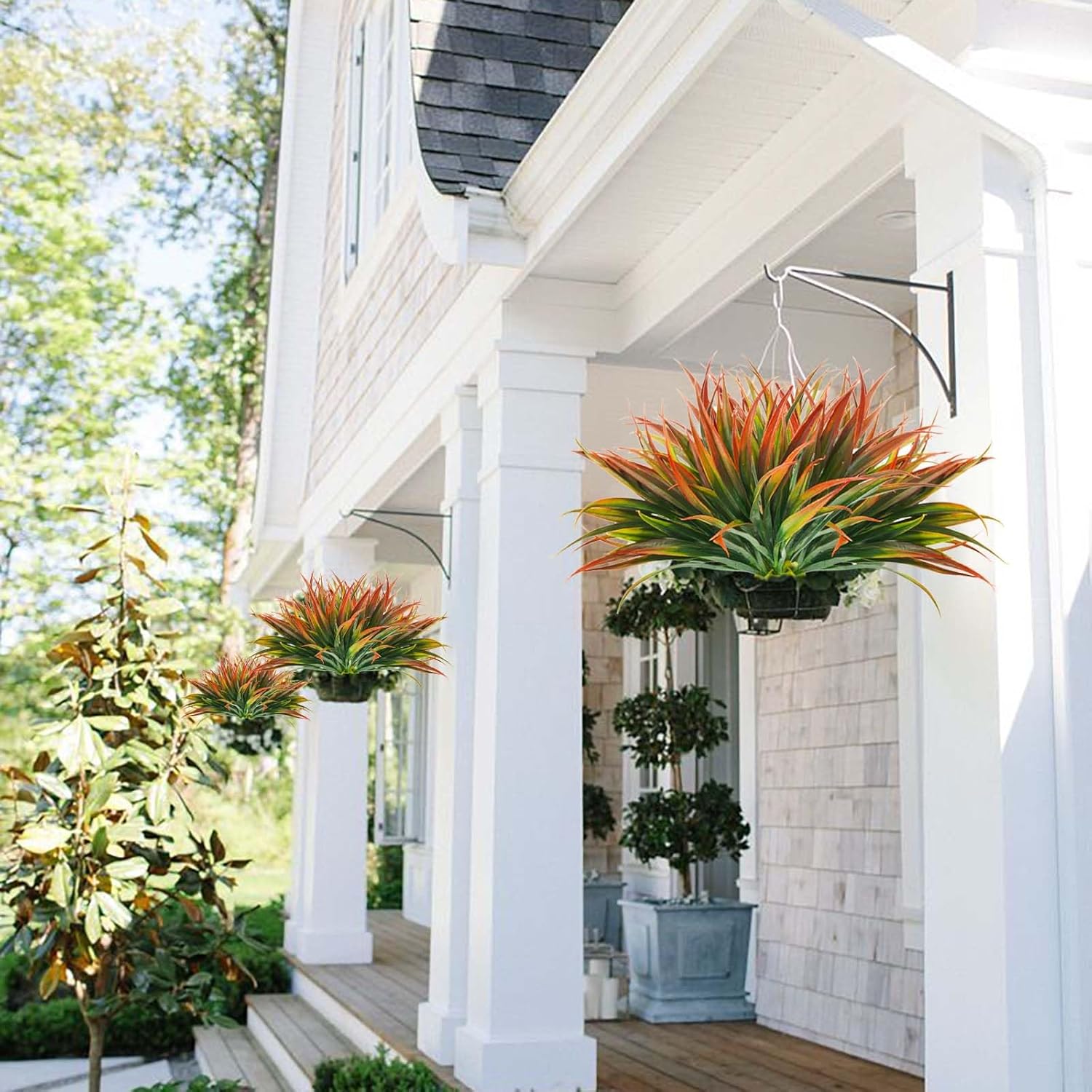 16Pcs Artificial Grass Fake Plants 17.3in Outdoor Plastic Plants UV Resistant Greenery Fake Grass for Home Window Garden Patio Hanging Planter Pathway Front Porch Décor Red