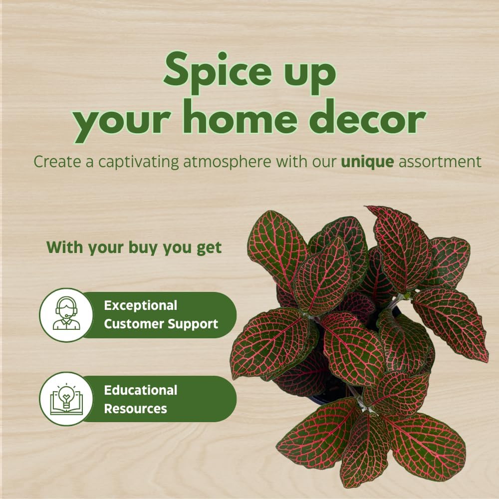 BubbleBlooms Red Fittonia Albivenis Nerve Plant in a 4 inch Pot Silver Net Leaf, Mosaic Jewel Creeping Indoor Plant verschaffeltii
