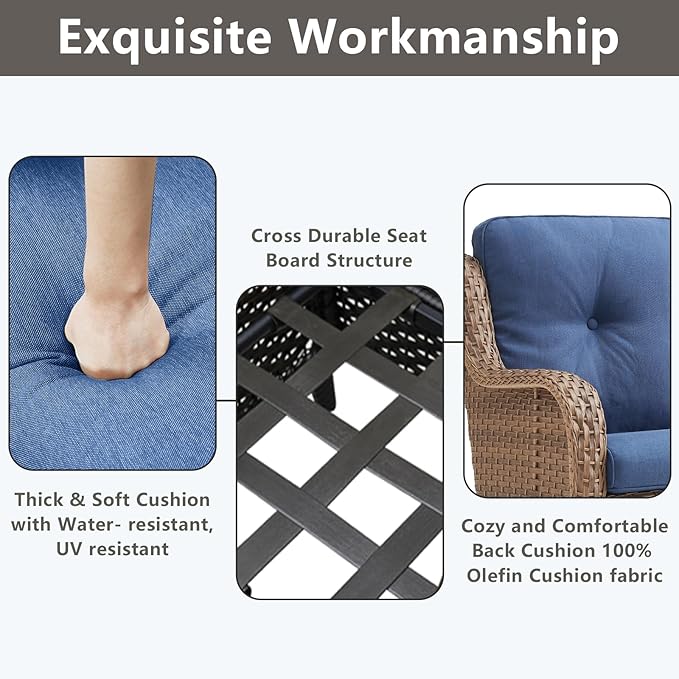 - 【Deep Seating & Comfort Cushions】This outdoor chairs feature deep and wide seats with 4-inch thick sponge-padded cushions create the ultimate patio seating experience.The whole piece of sponge padding and the curved cushion design on the edge make the wicker single chair looks elegant and comfortable.