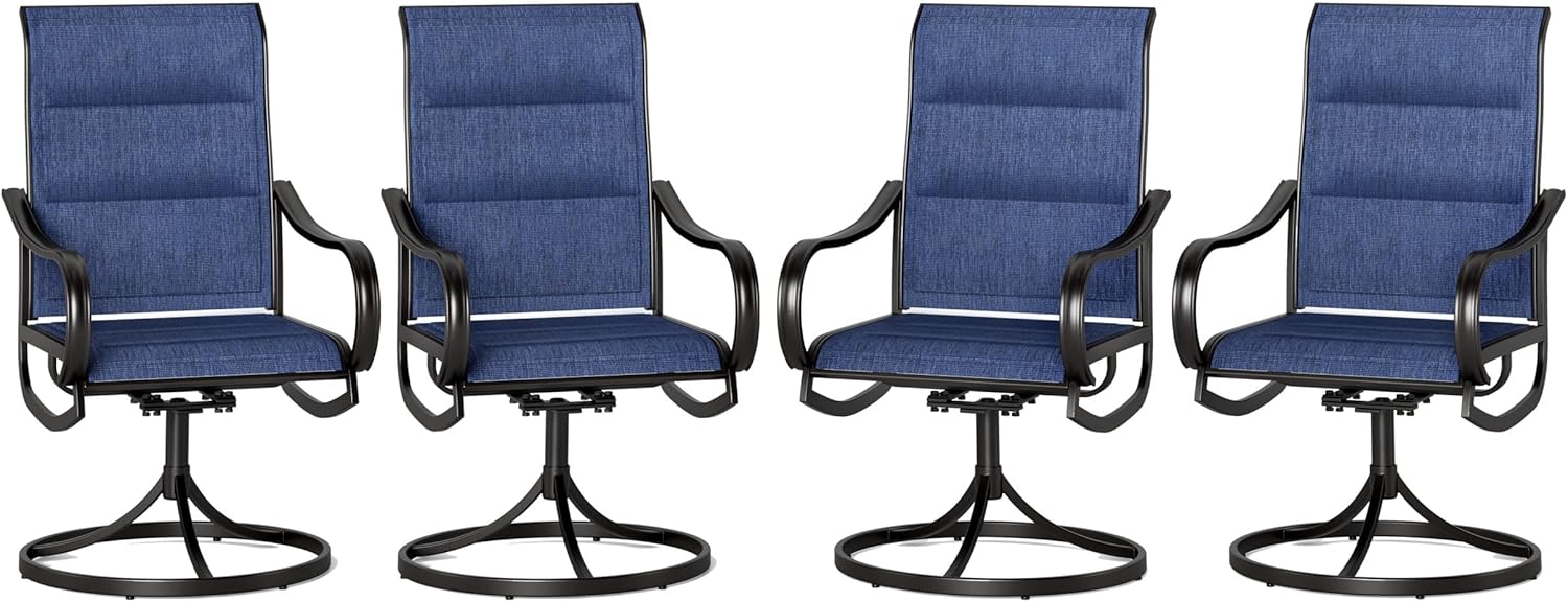 PHI VILLA Patio Swivel Dining Chairs Set of 4, All Weather Outdoor Chair with Padded Textilene & Black Metal Frame for Outdoor Lawn Garden Poolside (Blue)