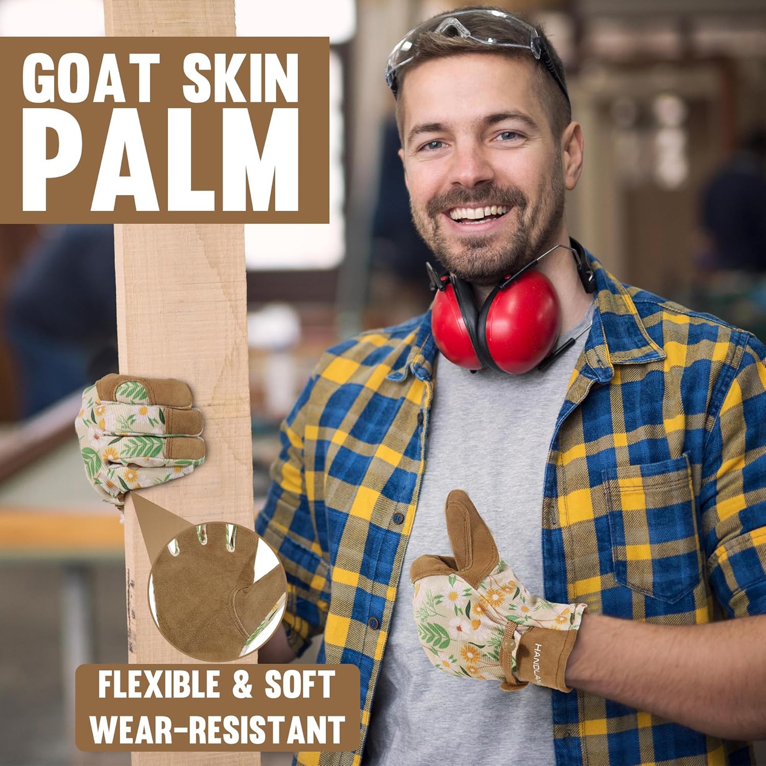 HLDD HANDLANDY Work Gloves for Women and Ladies, Leather Gardening Gloves Flexible Mechanic Working Gloves