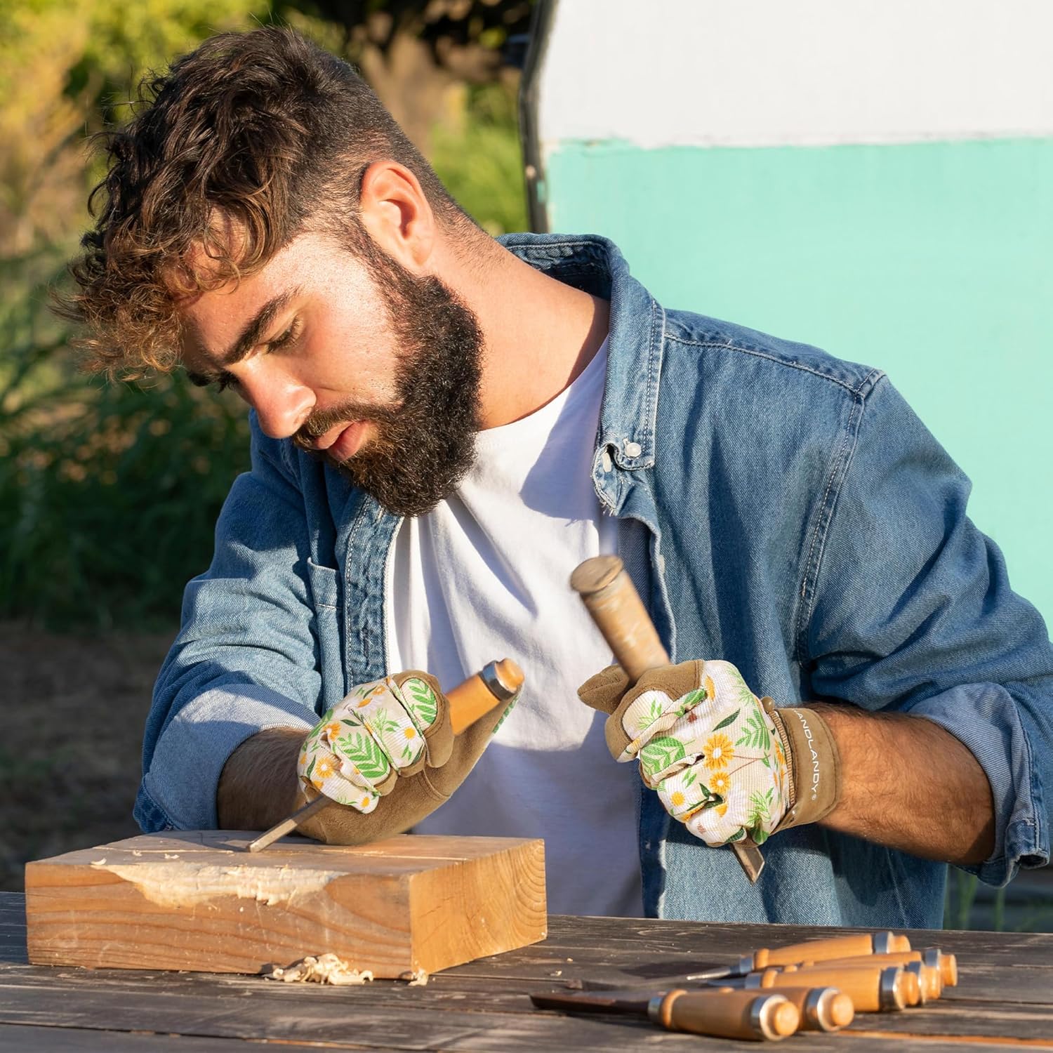 • Womens Floral Gardening Gloves - Soft deerskin leather palm, superior abrasion and puncture resistance provides perfect protection for your hands.