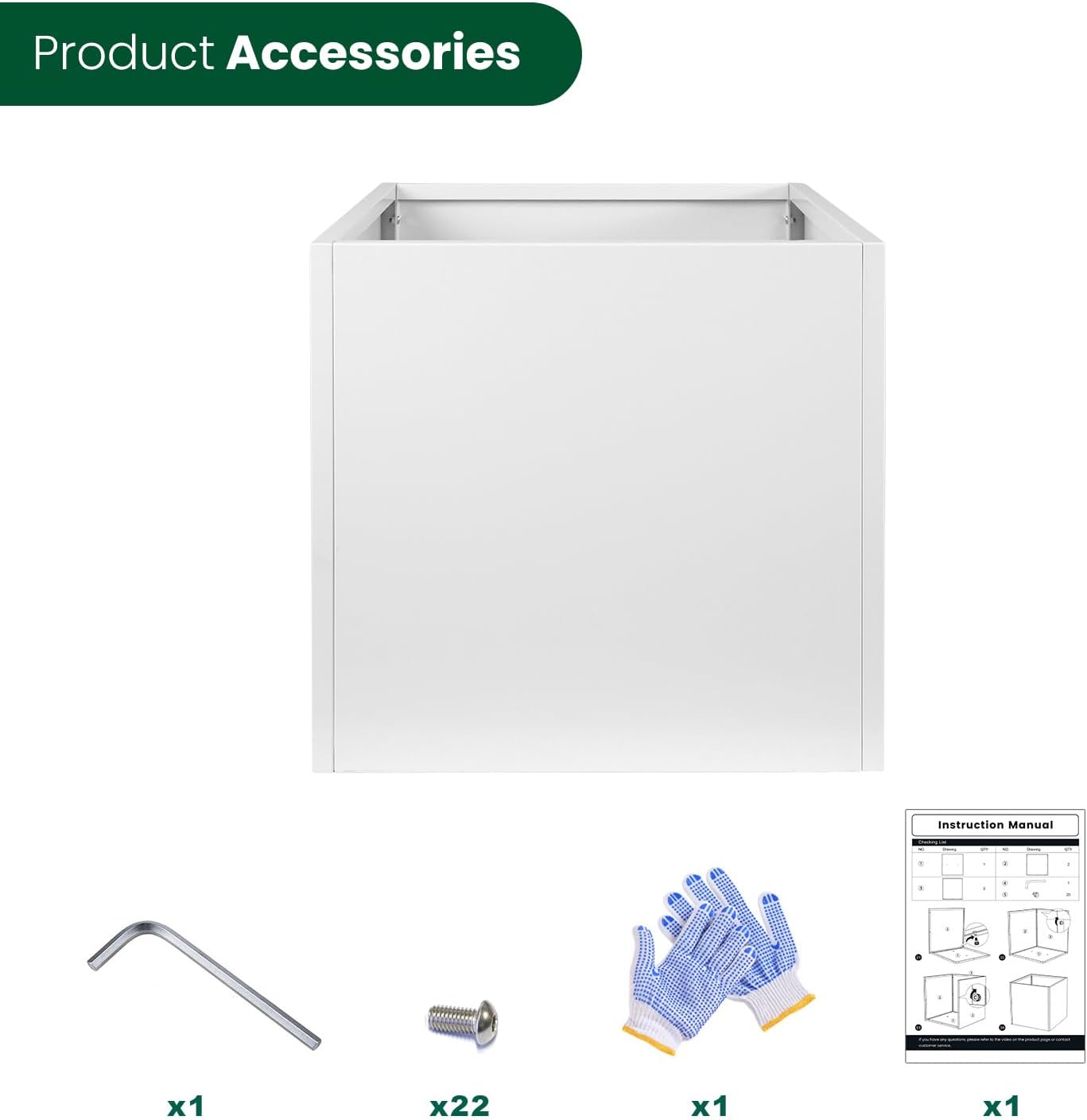 White Steel Planter Square Outdoor Planters Galvanized Steel Planter Box Indoor Metal Large Planters Cube Heavy Duty Flower Pot 24 Inch Modern Commercial Residential for Trees Patio Deck Yard Garden