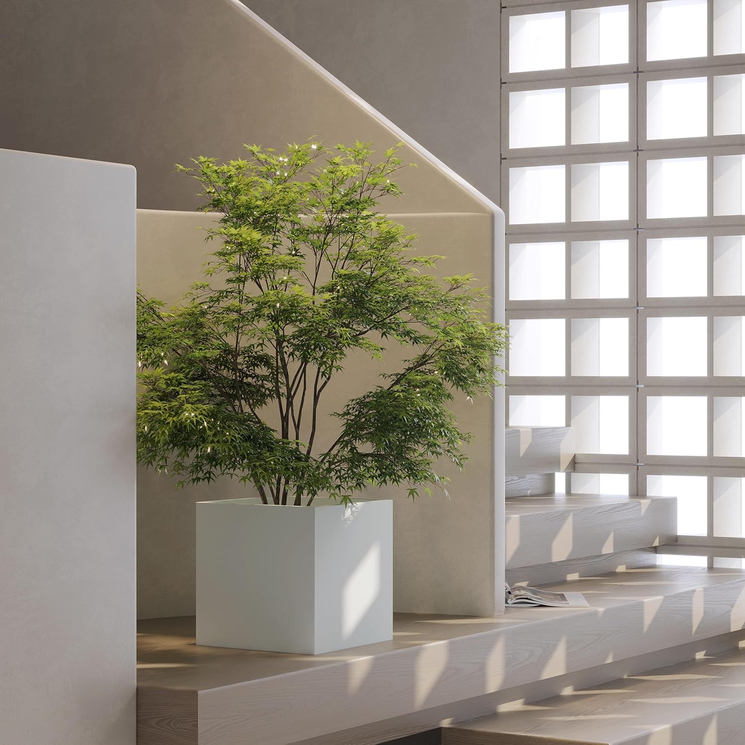 White Outdoor Planter Square Steel Planters Galvanized Steel Planter Box Indoor Metal Large Planters Cube Heavy Duty Flower Pot 20 Inch Modern Commercial Residential for Trees Patio Deck Yard Garden
