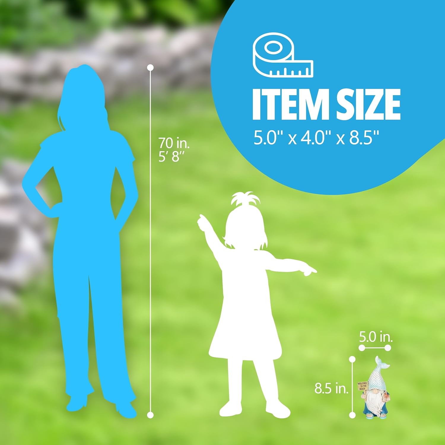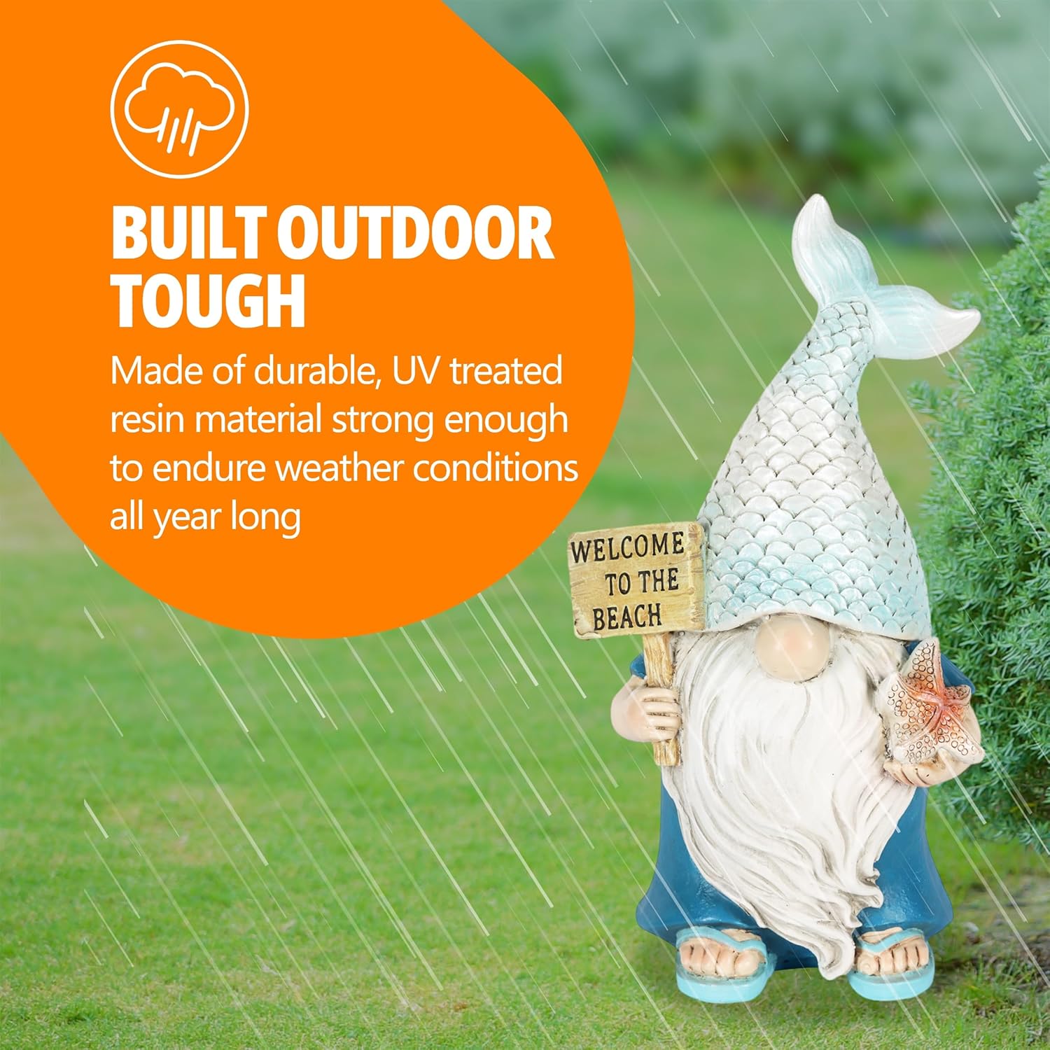 Exhart Mermaid Tail Hat Garden Gnome Statue with Welcome to The Beach Sign, 5 x 4 x 8.5 Inches