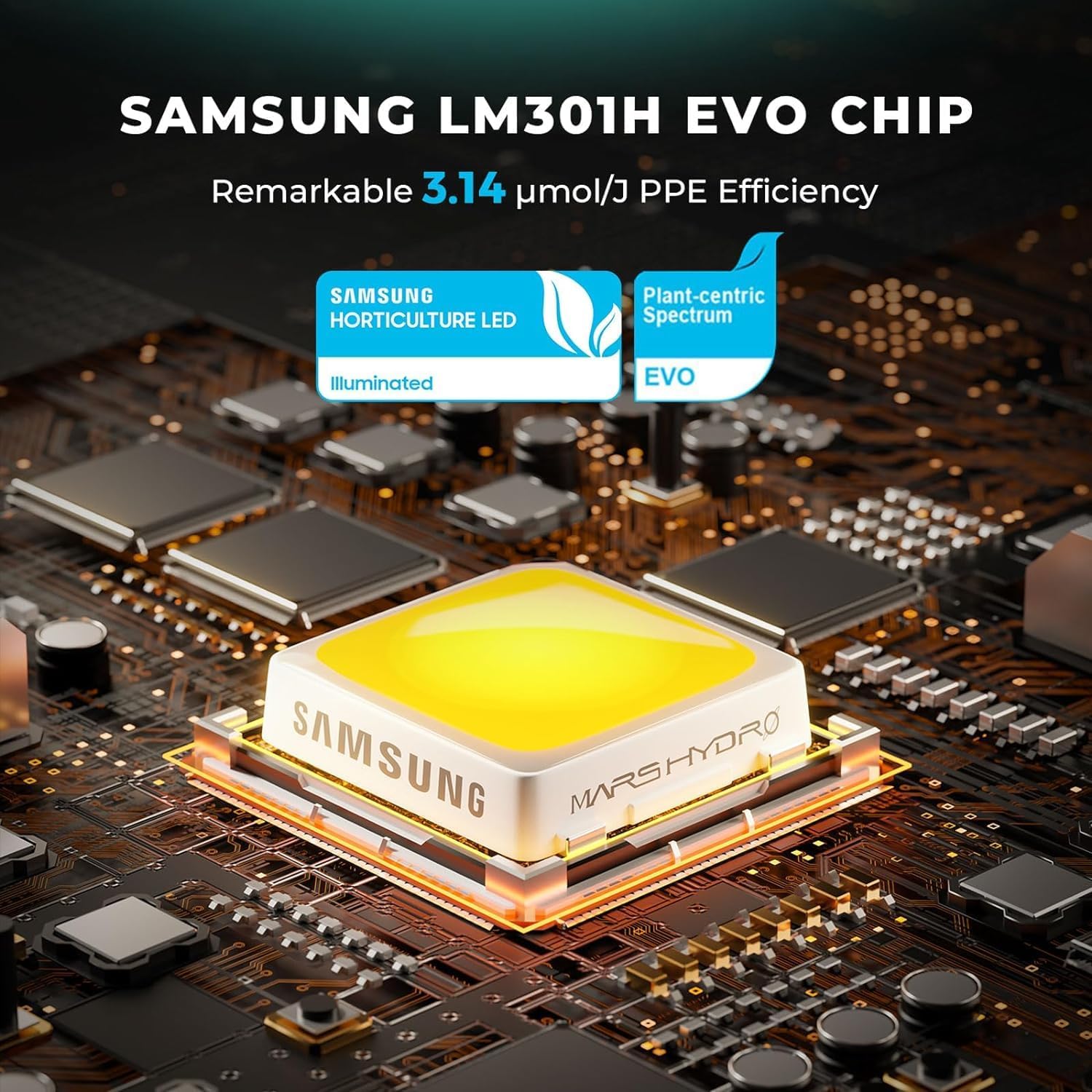 - OUTSTANDING EFFICIENCY: Packed with cutting-edge Samsung LM301H EVO diodes, delivering a remarkable 3.14 μmol/j per diode and provides an overall PPE of 2.85 μmol/j, a PPFD of up to 420 μmol/m²/s, making it an excellent choice for enhancing flowering to produce higher quality crops and greater yields.