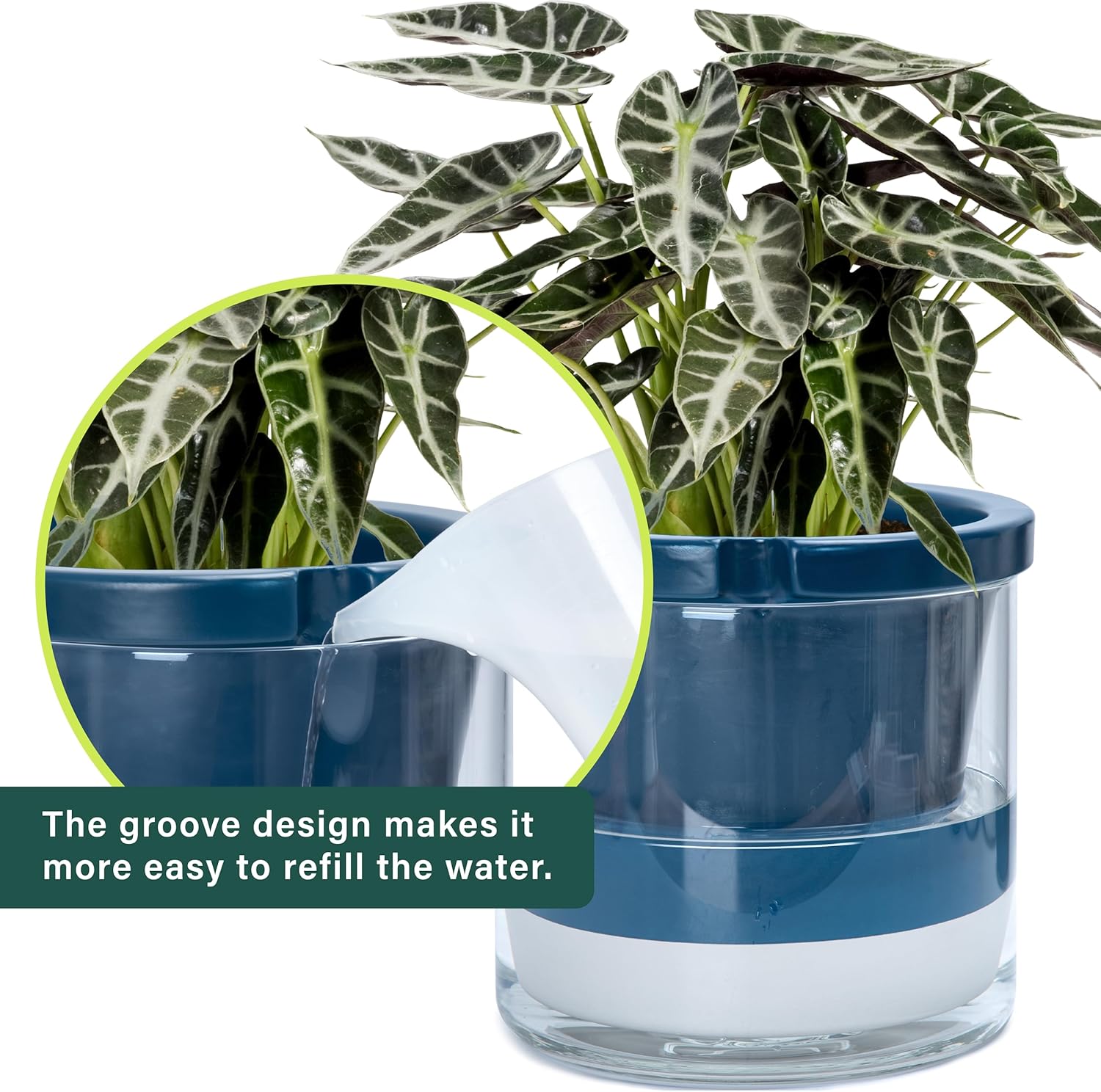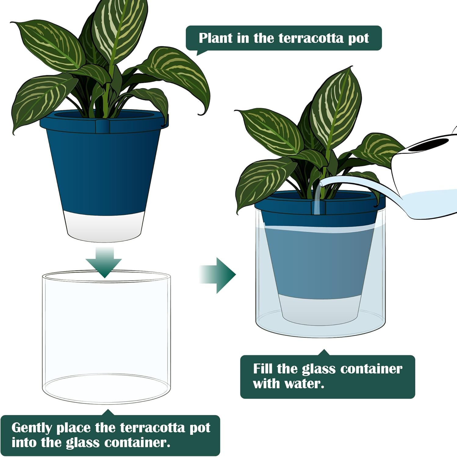 - Innovative Self-Watering Design: The bottom quarter of the terracotta pot is unglazed, just fill the glass container with water to ensure plants will absorb only what they need through the terracotta pot walls.