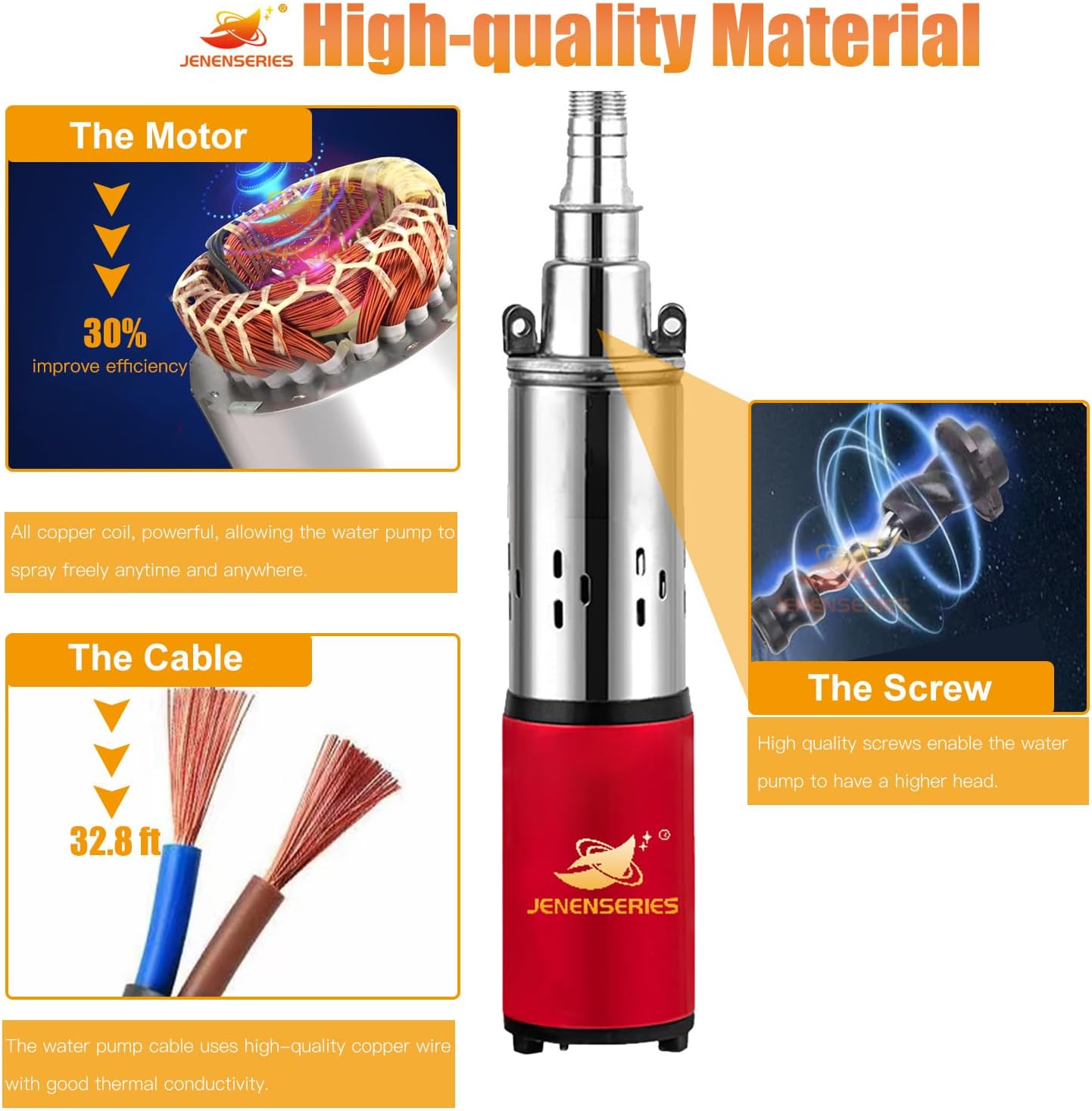 - 4. [Advantages of Screw]: 1-inch water outlet, equipped with a screw with high rotation speed to increase the pump head, which can draw more water from deep wells.