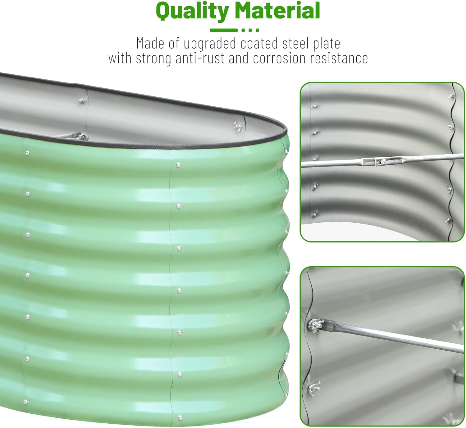 - EASY ASSEMBLY: Our oval garden box with user manual and tools allow you to easily assemble within a short time, along with heavy duty rubber edging to cover the edges providing protection from injury.