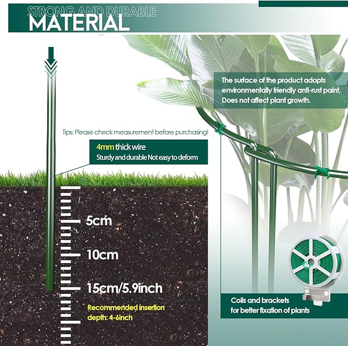 - 🌿Package Includes: 12 pieces half round plant support stakes + 164 Feet Garden Plant Ties. They will likely prove to be one of your favorite garden helpers. If you have any questions of plant trellis, please kindly feel free to contact us, we are committed to providing the best possible service to our customers.
