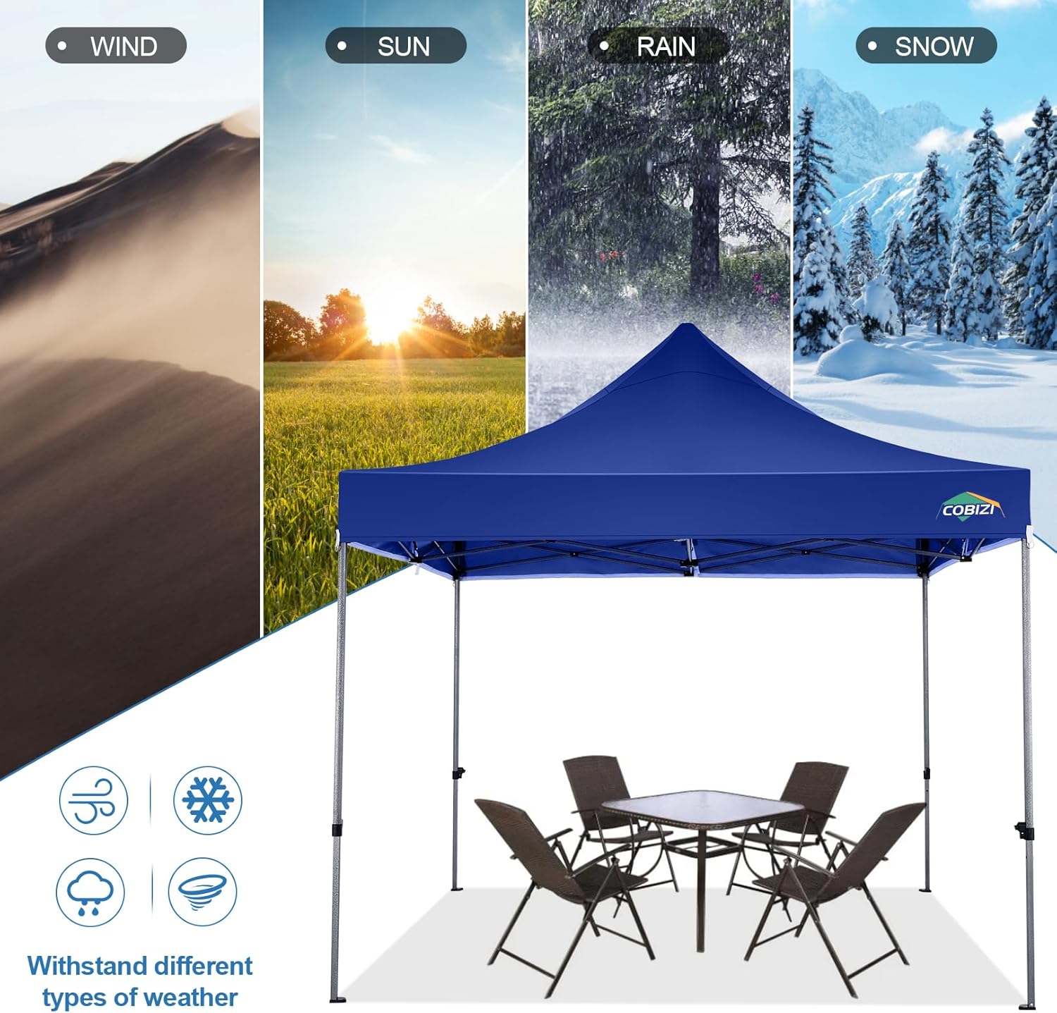 COBIZI 10x10 Pop Up Canopy Tent 10x10 Easy up Canopy, Heavy Duty Outdoor Canopy UPF 50+ All Weather Waterproof Instant Party Tents for Parties Gazebo with Handbag, Navy Blue(Windproof Upgraded)