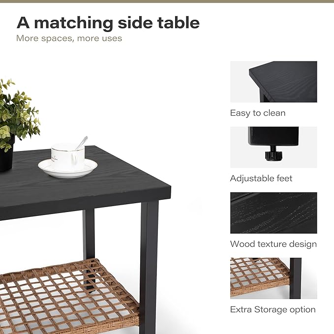 - 【Sturdy & Practical】The rocking chair has a weight-bearing capacity of up to 300 lbs. Equipped with 0.39" adjustable foot pads, the table can adapt to uneven ground. The 2-layer storage design increases extra storage space, which is perfect for storing snacks, drinks, fruits, etc.